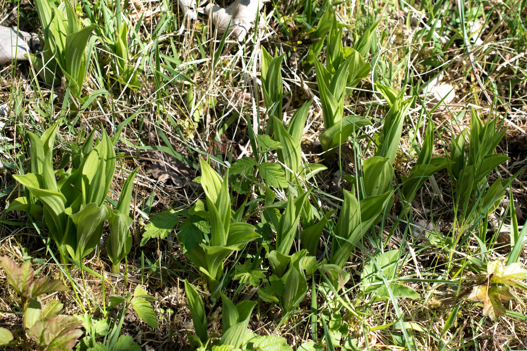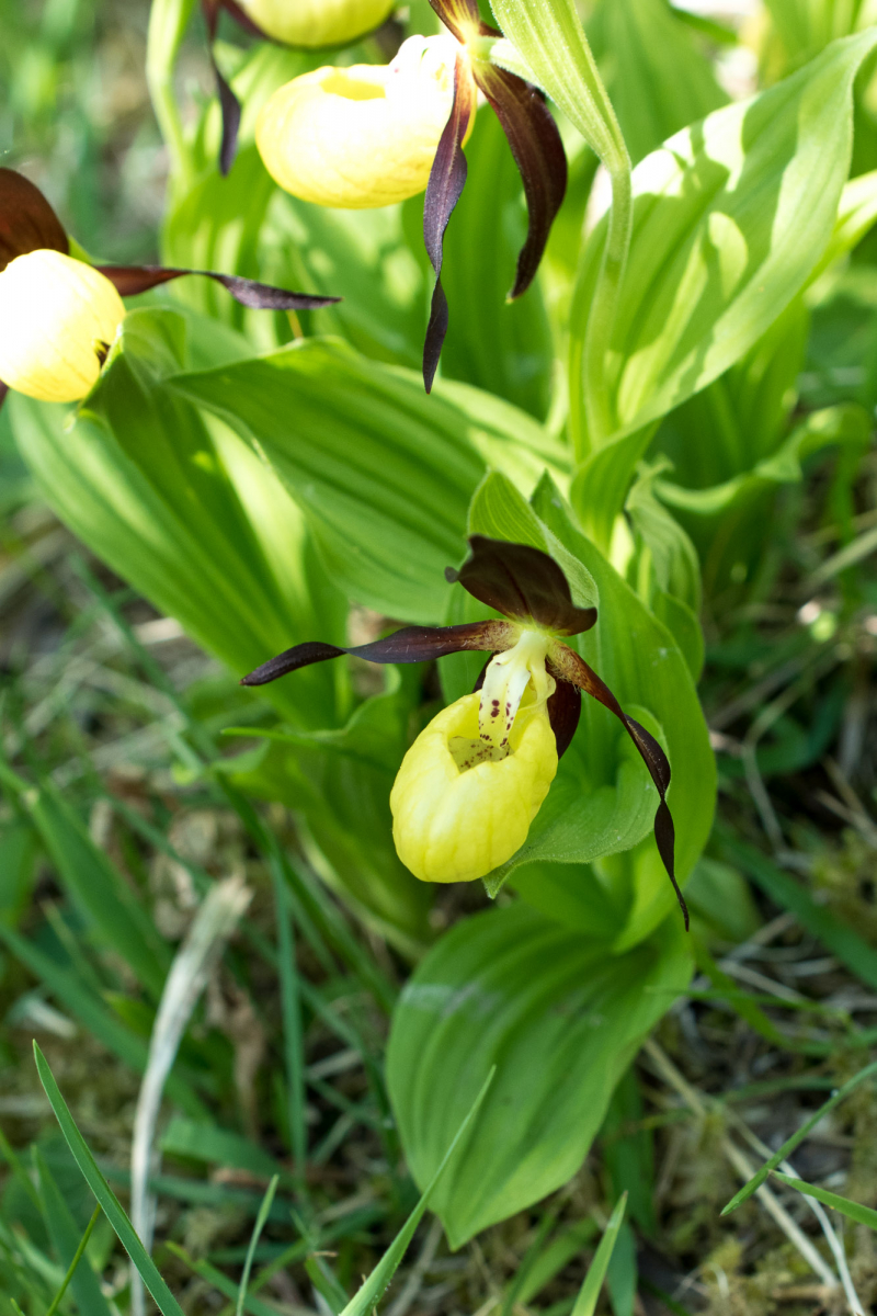 Nur mal zur Veranschaulichung, wie nah die Orchideen in diesem Gebiet an den Wegen wachsen... Links sieht man die Gruppe Frauenschuhe..