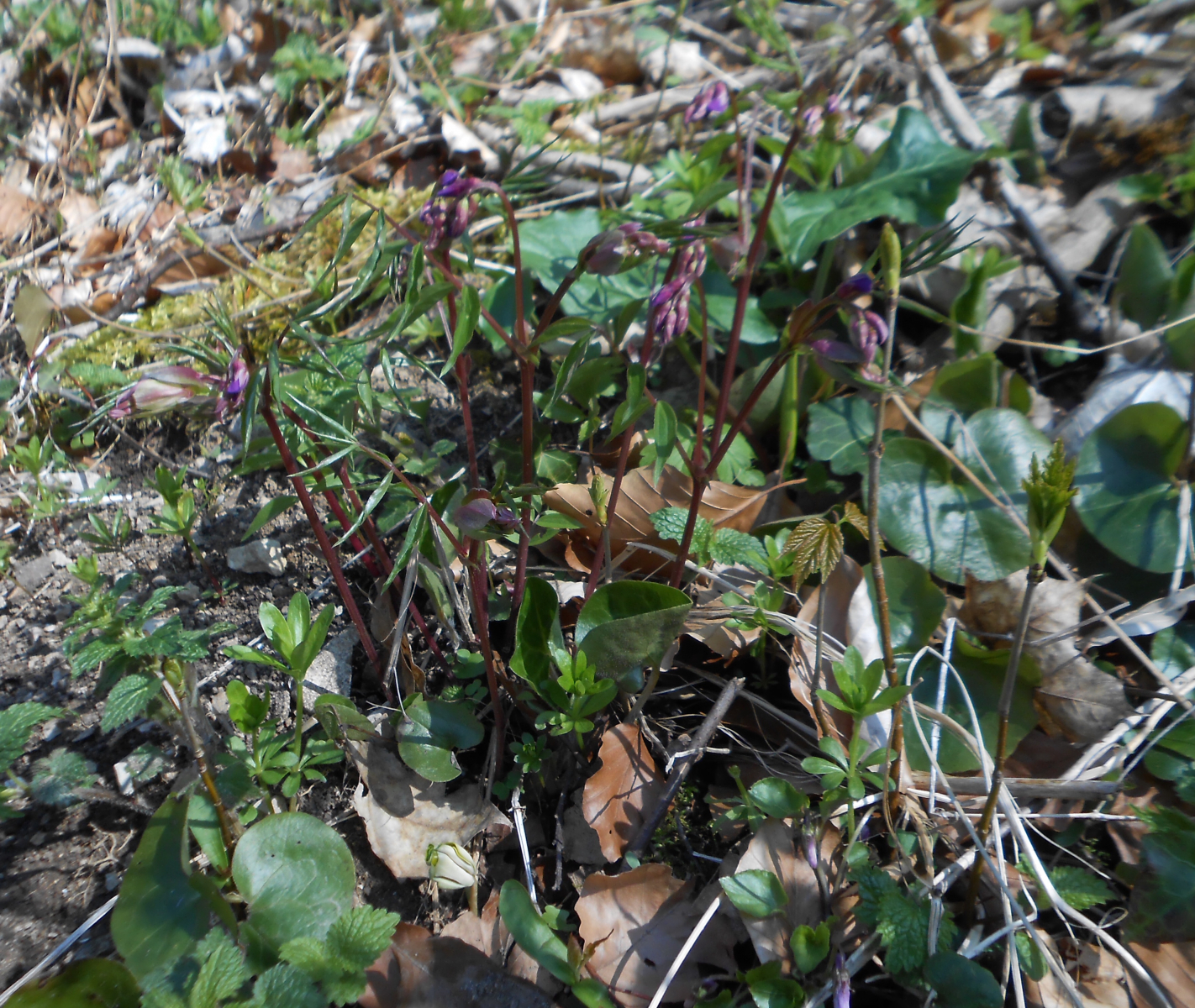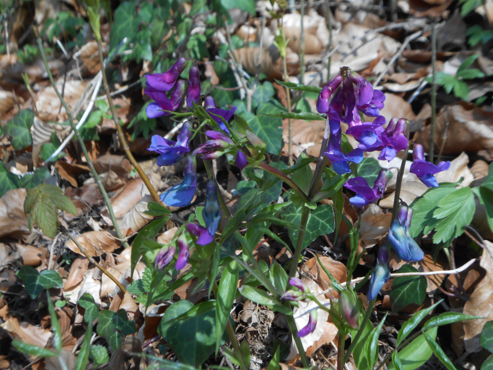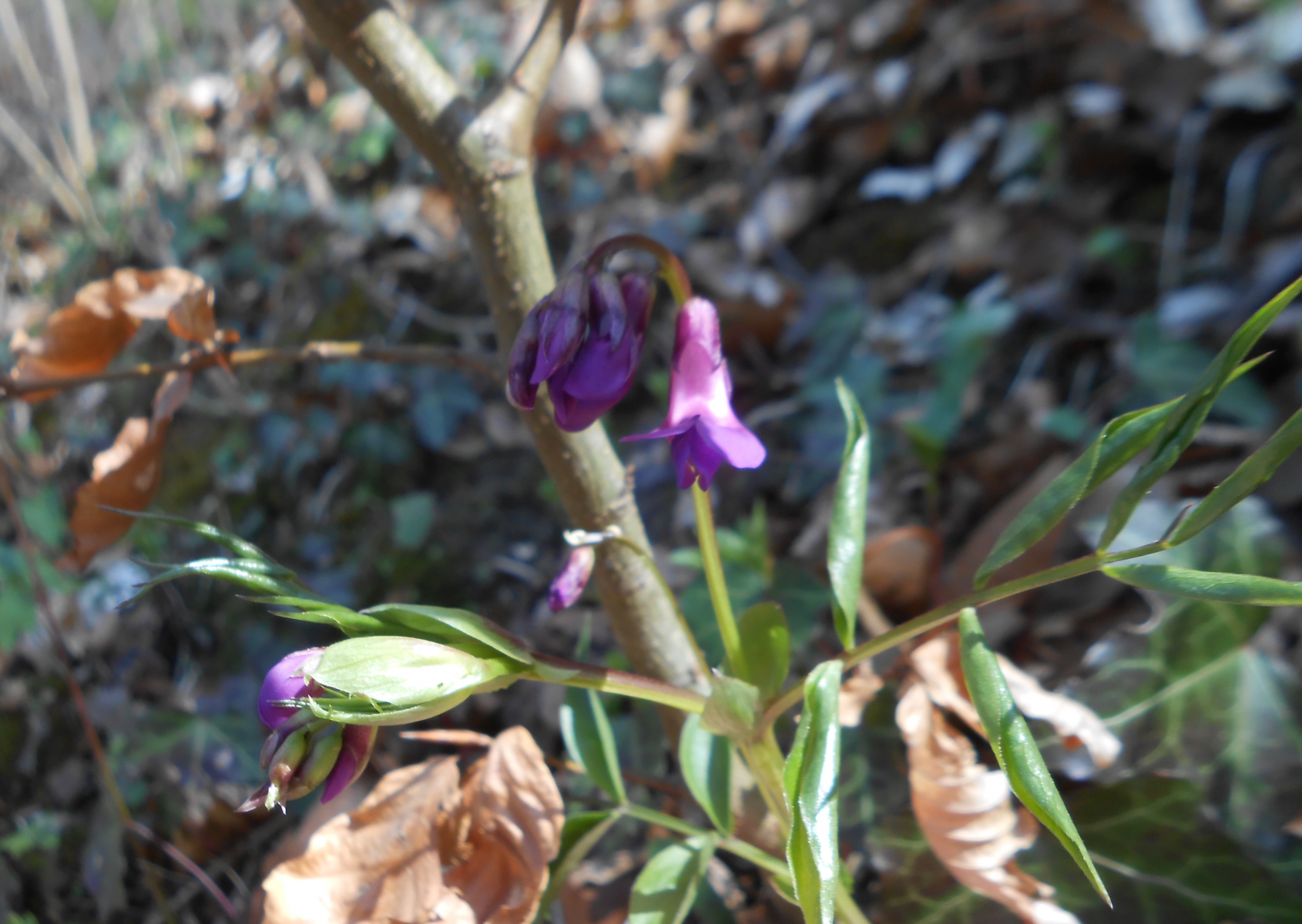 Die Akelei wurde ja schon bestimmt. Die Frühlings-Platterbse, die ihr farblich tatsächlich etwas ähnelt, kann ich hier mal zeigen: