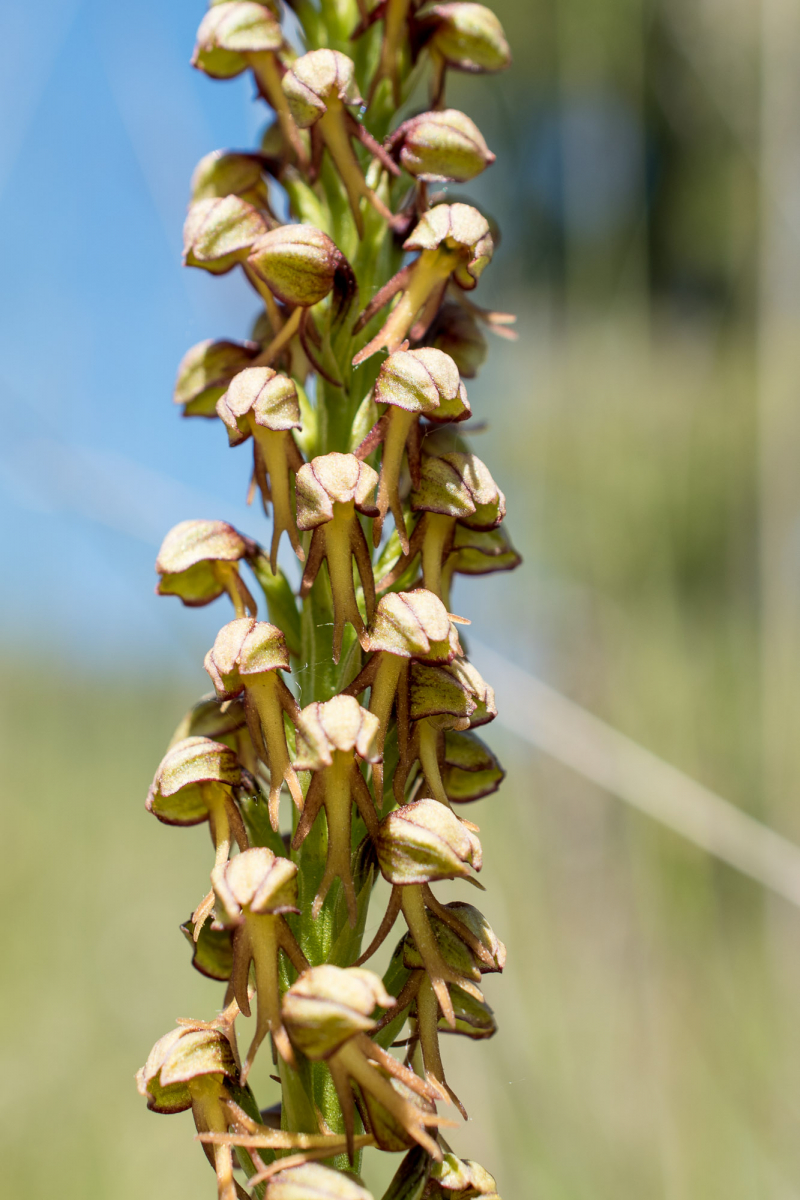 bei der Affenorchis öffnen sich die Blüten von oben nach unten. Möglich wäre eine Hybride aus O. militaris und Ohnsporn, aber da müsste man die ganze Pflanze sehen. -