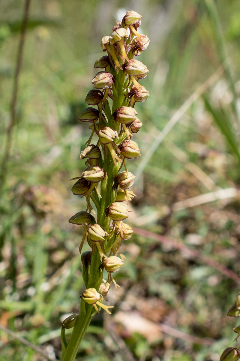 bei der Affenorchis öffnen sich die Blüten von oben nach unten. Möglich wäre eine Hybride aus O. militaris und Ohnsporn, aber da müsste man die ganze Pflanze sehen.Hallo Karl, danke für die Detailinfo! Ich hab auch nicht gemeint, daß es eine Affenorchis ist (dazu kenne ich mich zuwenig aus), sie hat mich wegen der kleinen "Männchen" nur daran erinnert.