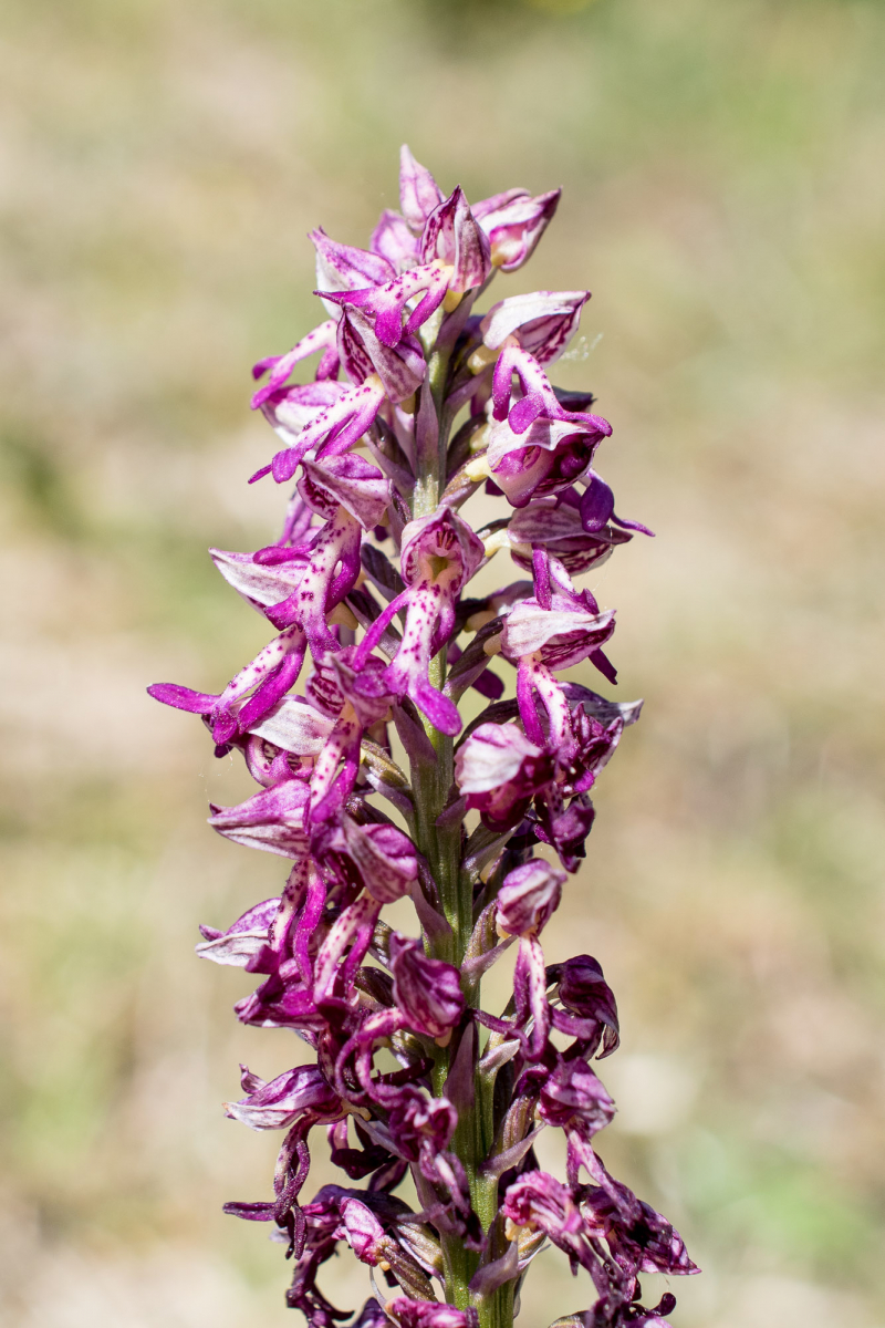 bei der Affenorchis öffnen sich die Blüten von oben nach unten. Möglich wäre eine Hybride aus O. militaris und Ohnsporn, aber da müsste man die ganze Pflanze sehen. -