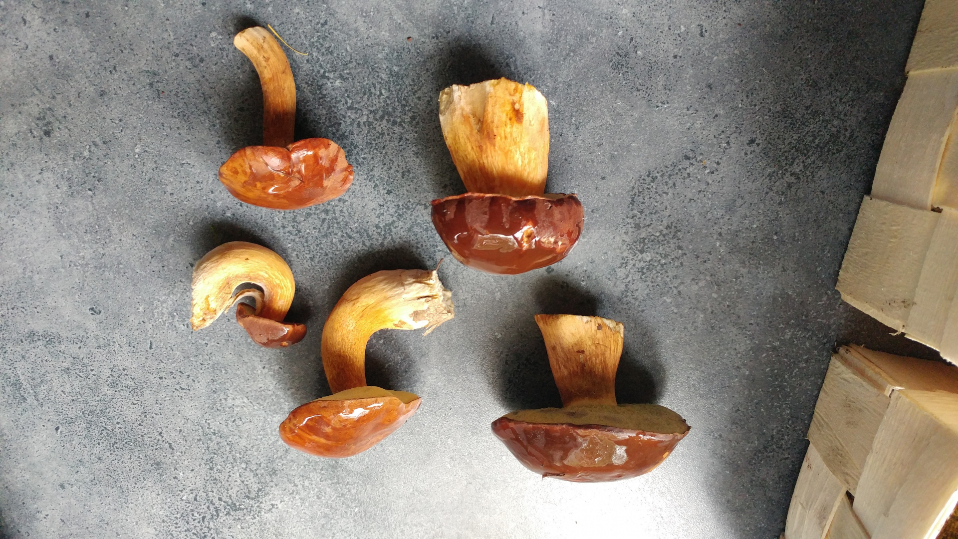 die Marone erkenne sogar ich als relativer Pilzanfänger sehr schnell. Dennoch verunsichert mich immer wieder, dass sie einmal mit einem schlanken Stiel auftritt und manchmal einen richtig dicken Fuß aufweist.