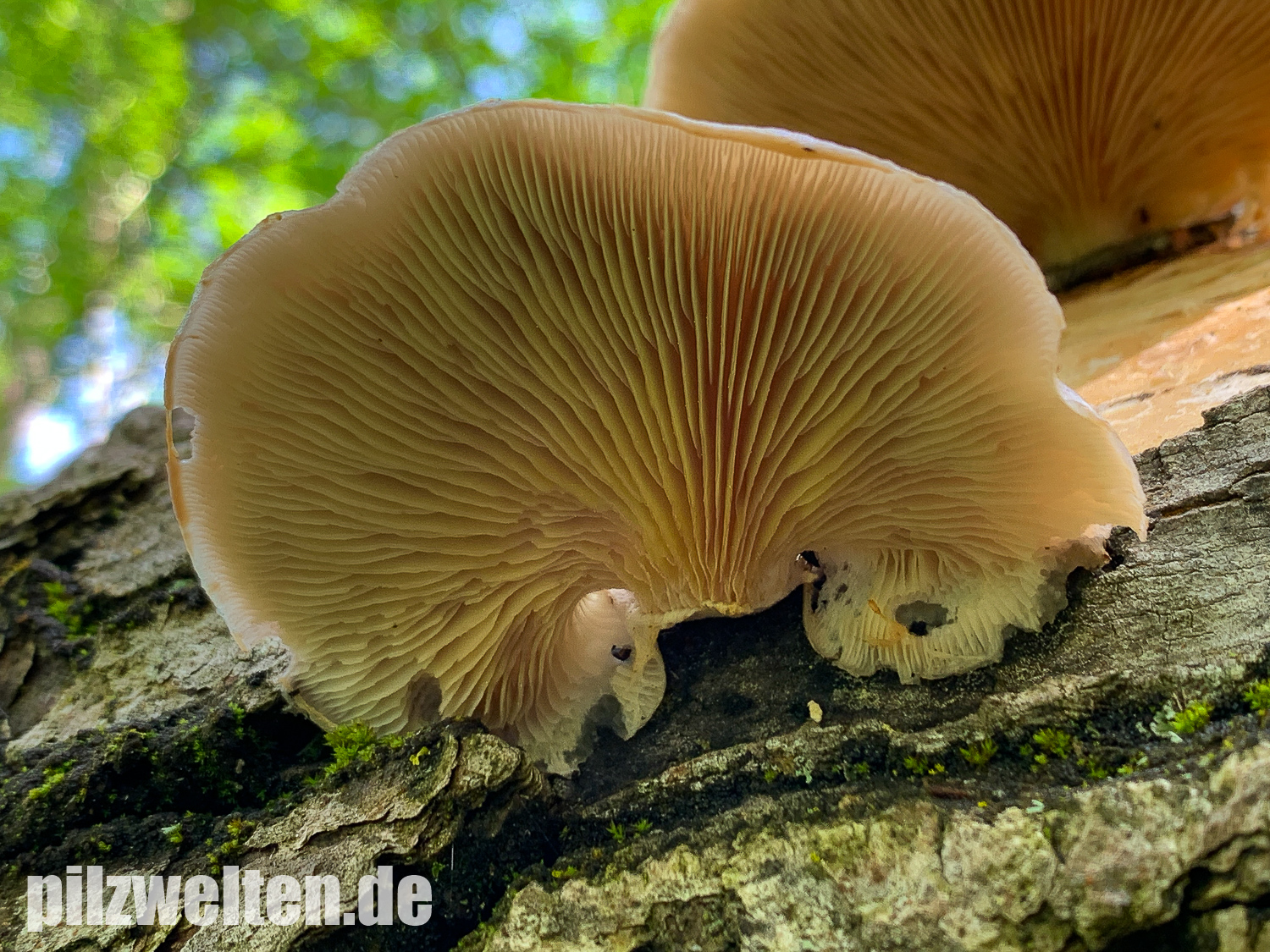 3. Beschleierter Pappel-Seitling, Pleurotus calyptratus (Diese haben den für die Art typischen Schleier innerhalb der letzten Tage vollständig verloren. In dem Zustand ist eine Verwechlungs mit Austernseitlingen wohl sehr, sehr wahrscheinlich. Auch wir hätten sie in diesem Zustand wahrscheinlich für Austernseitlinge gehalten, wenn wir diese Art nicht an gleicher Stelle schon einige Tage vorher mit Schleier gefunden hätten)