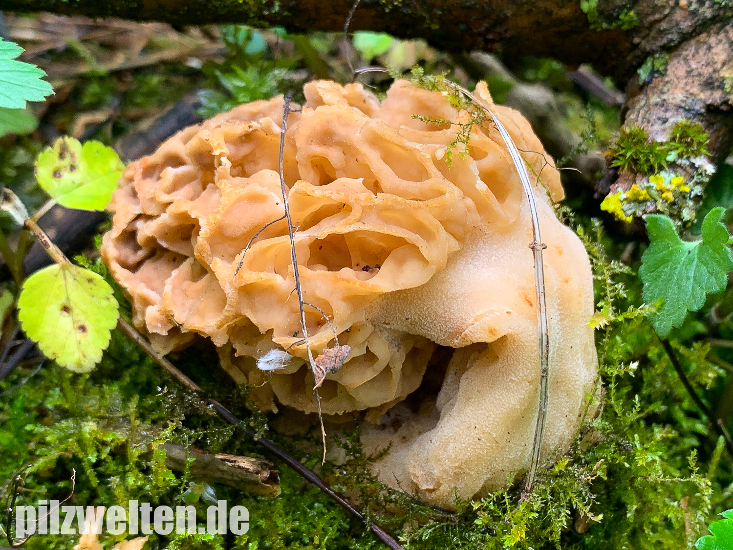 2.5 Speisemorchel, Morchella esculenta - leider waren viele Speisemorcheln bereits in nicht mehr in brauchbarem Zustand und durften im Wald bleiben. Erst war es ihnen zu trocken, jetzt war es ihnen zu nass und viele Exemplare sind bereits von Schimmel befallen.
