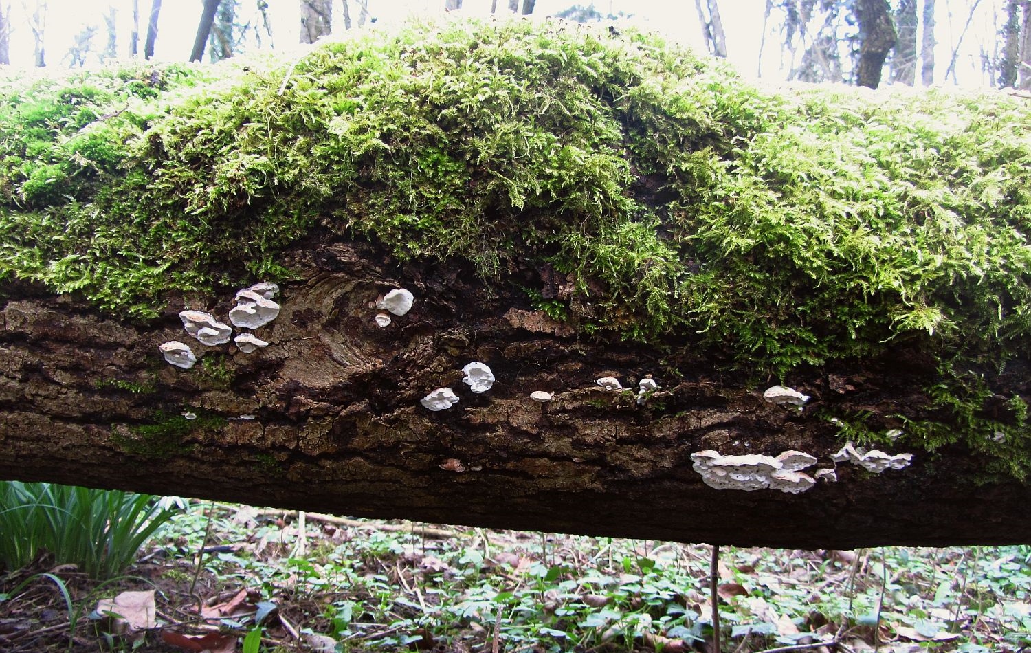 Ich kann es selbst natürlich nicht sicher erkennen, würde folgende, durchaus hübsche Kollektion aber angesichts der ökologischen Umstände (fetter, liegender Ahornstamm in einem thermophilen Auwald) aber einfach mal als Skeletocutis nemoralis vorstellen: