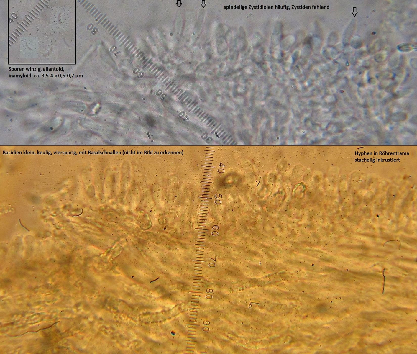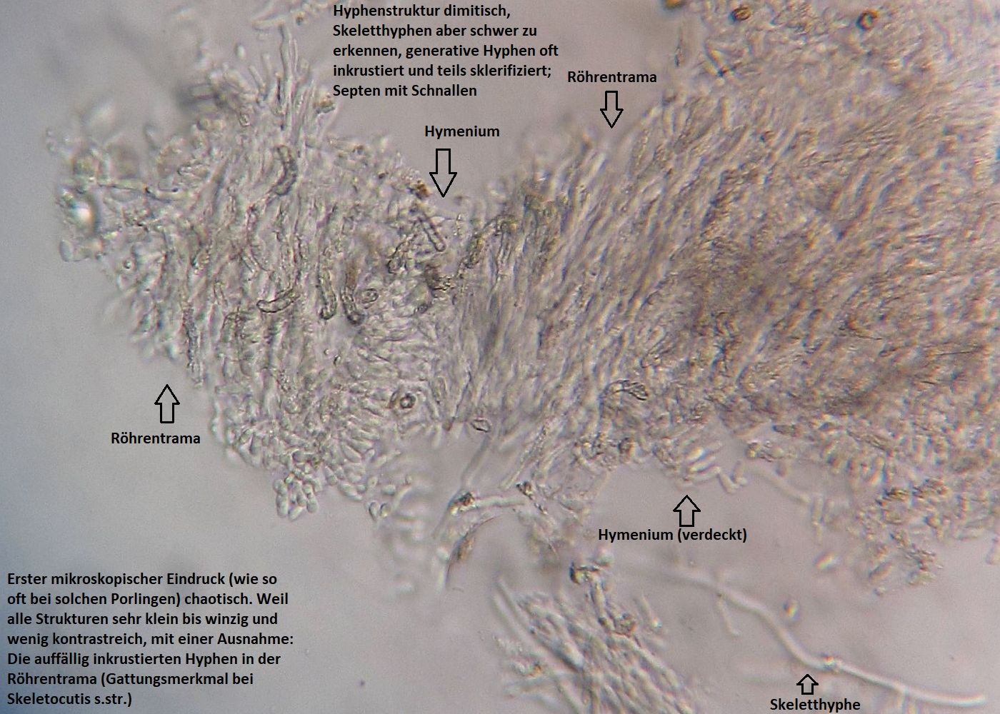 Damit wären die hütchenbildenden, europäischen Arten mit winzigen Sporen nur noch zweie, nämlich Skeletocutis semipileata und Skeletocutis nemoralis.