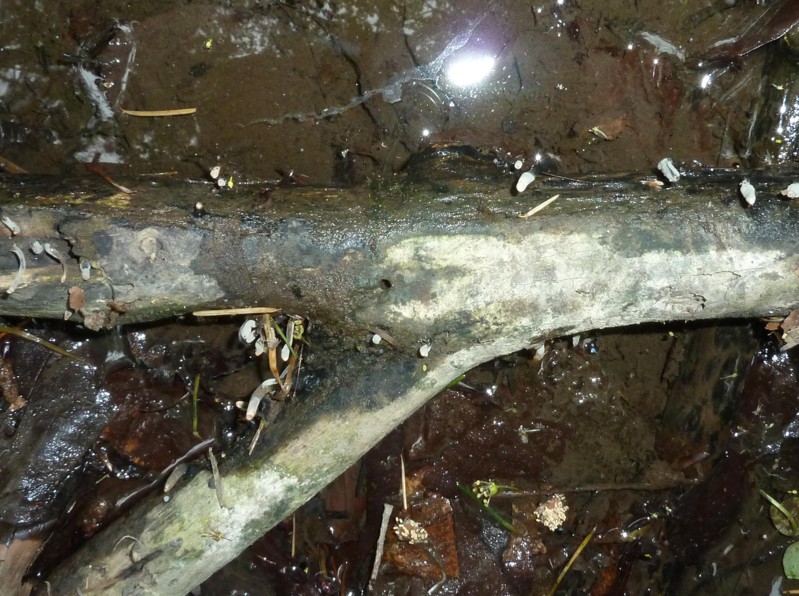 Diesen Ast nahm ich aus dem Wasser und stellte fest , dass einige der Fruchtkörper auch unter der Wasseroberfläche begannen.