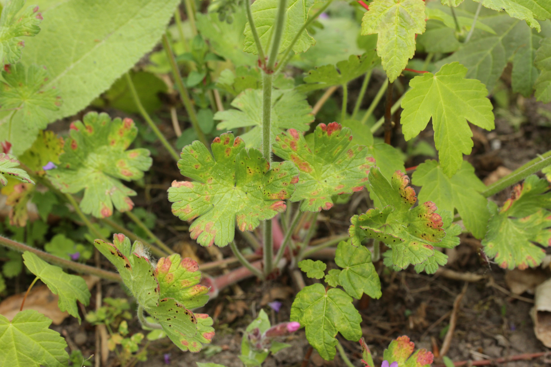 9. Hier bin ich mir bei der Wirtsbestimmung nicht ganz sicher. Wenn es aber Geranium pyrenaicum ist, ist der Pilz Uromyces kabatianus