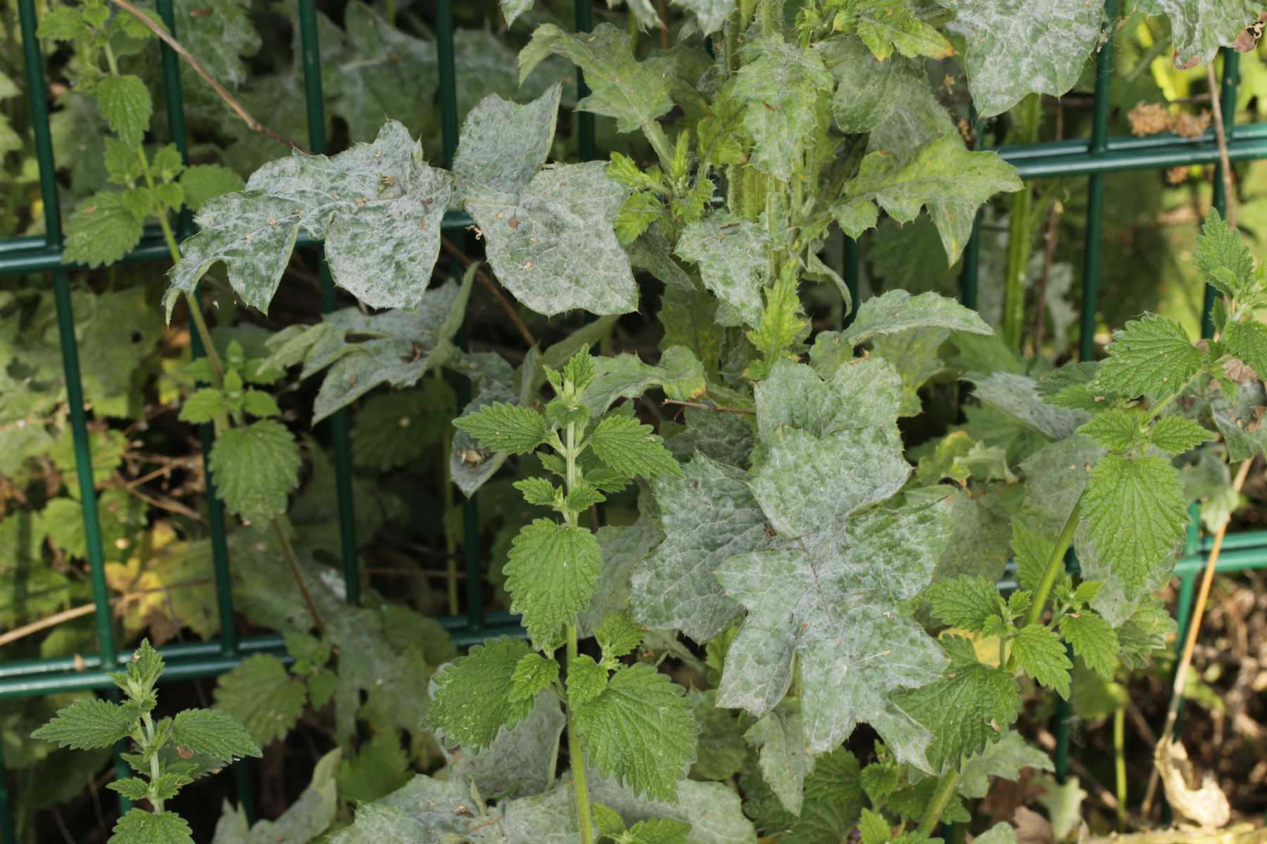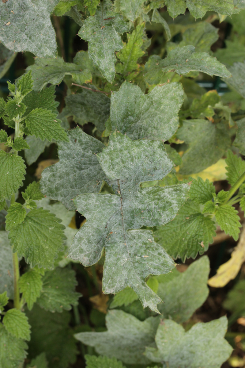 2. Bei der Bestimmung der Distel tue ich mich schwer. Der Mehltau sollte aber unabhängig davon Golovinomyces montagnei sein.