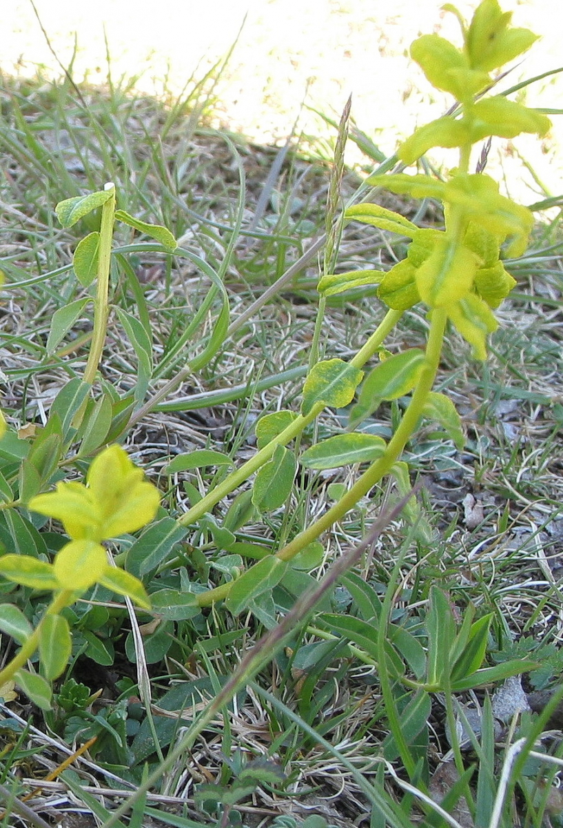 Bei einem Spaziergang (Magerrasen über Kalk) fiel mir eine nicht blühende Pflanze mit schön gelb-leuchtenden,