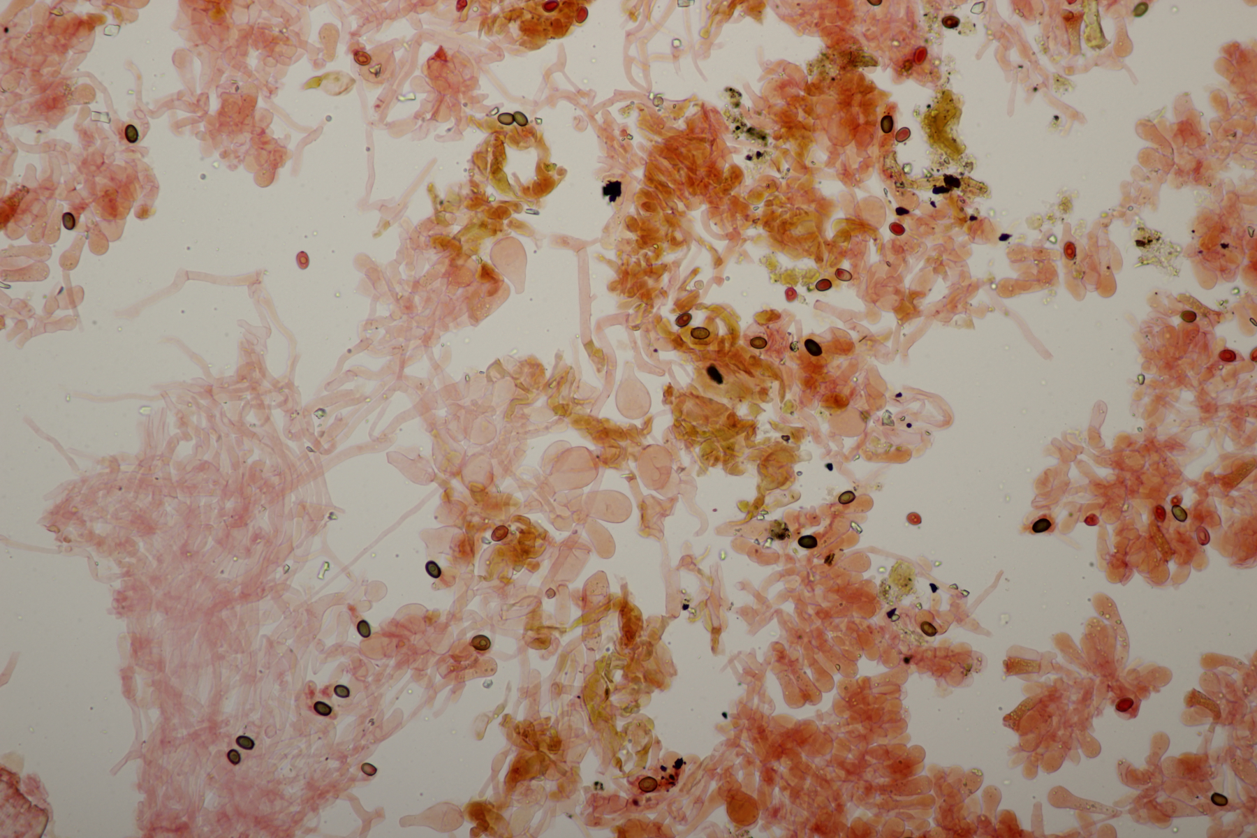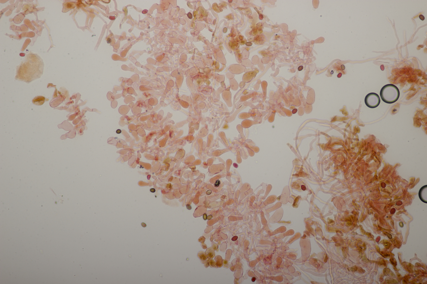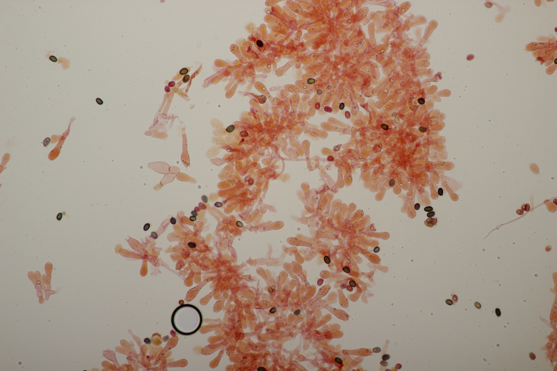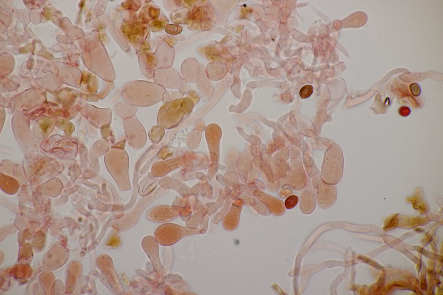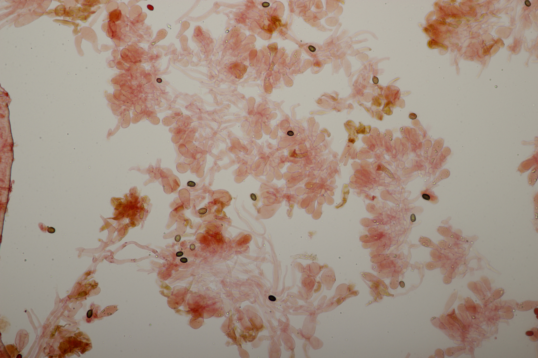Noch mal ein Überblicksbild, wo man glaube ich einige Cheilozystiden erkennen kann