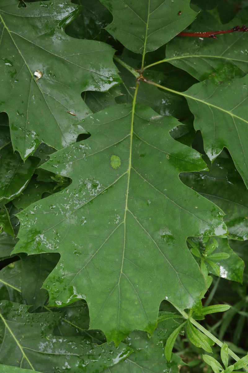 Prunus serotina hingegen hat fast glatte Blätter (Blattnerven fast nicht eingesenkt), glänzende Blätter mit deutlicher Wachsschicht. Fotos von heute; "leider" sind die Blätter nass. Bilder von trockenen ergänze ich gerne.
