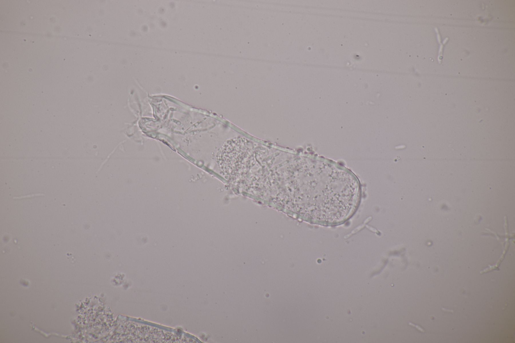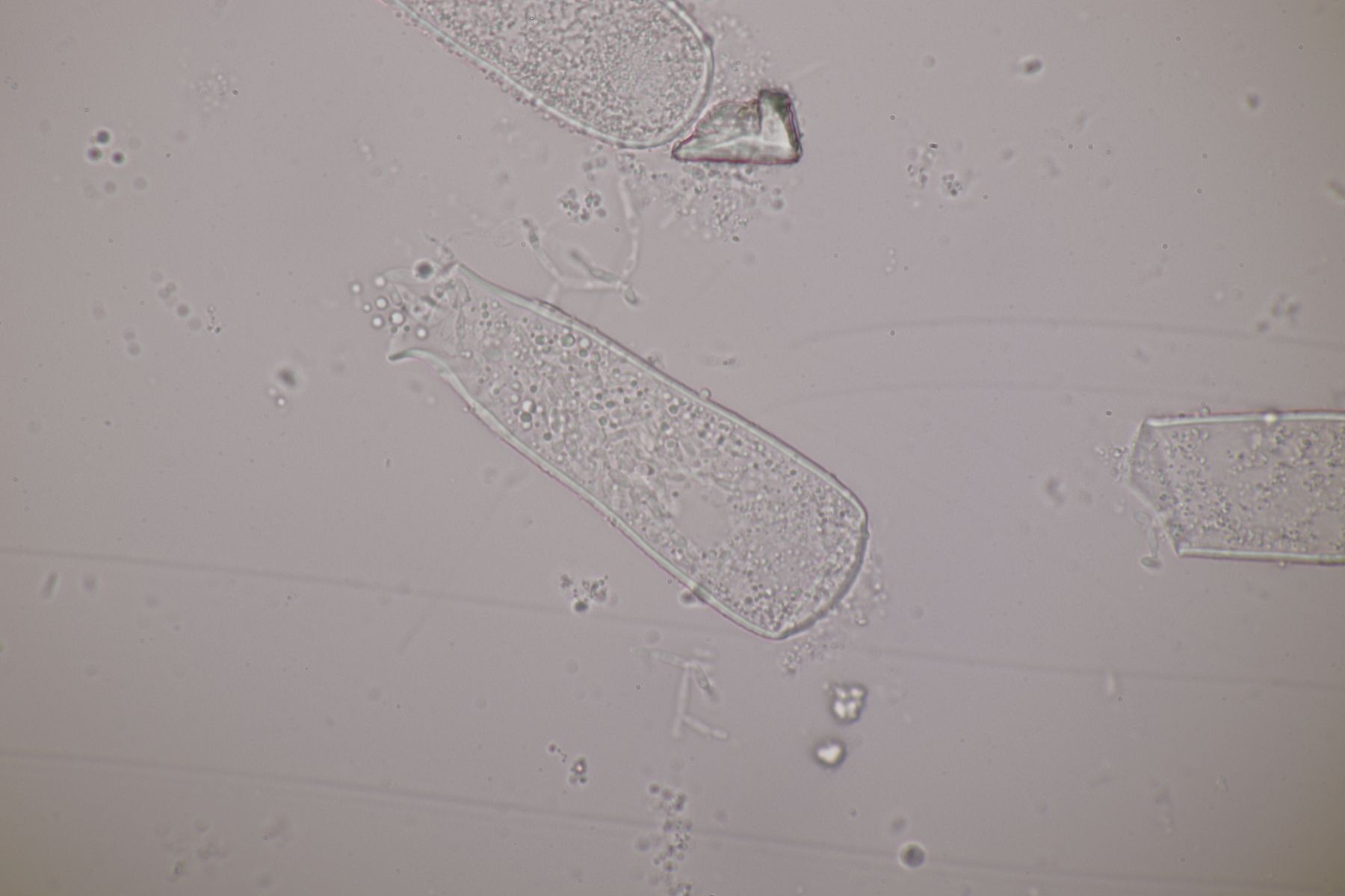 Die Asci schimmern bläulich im Gegenlicht.