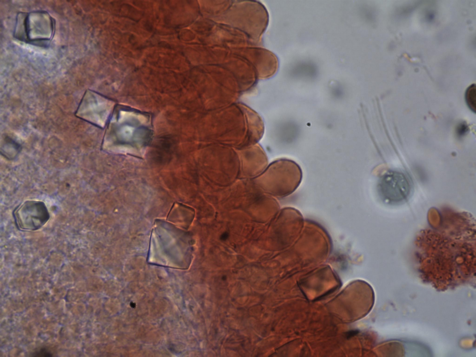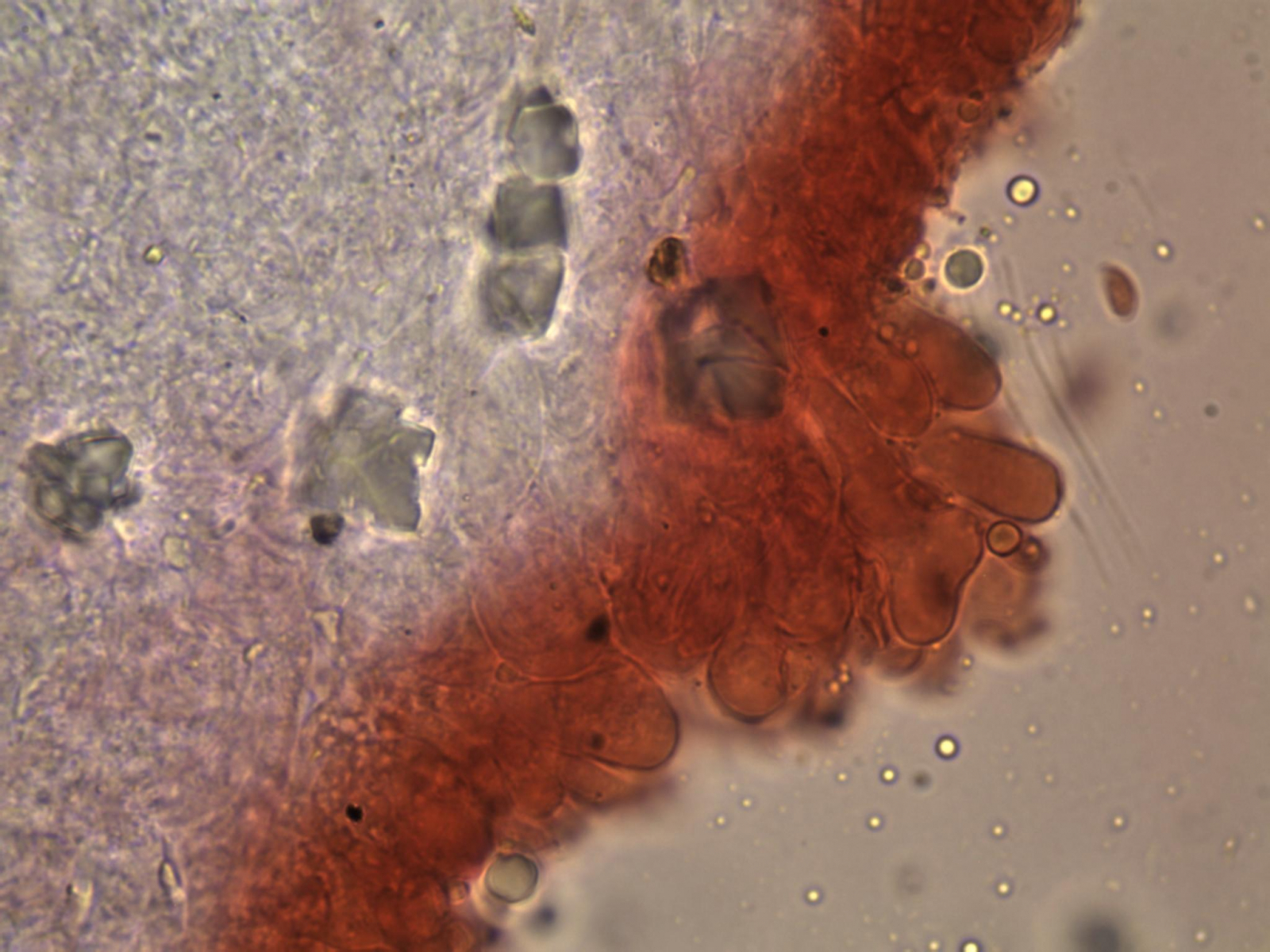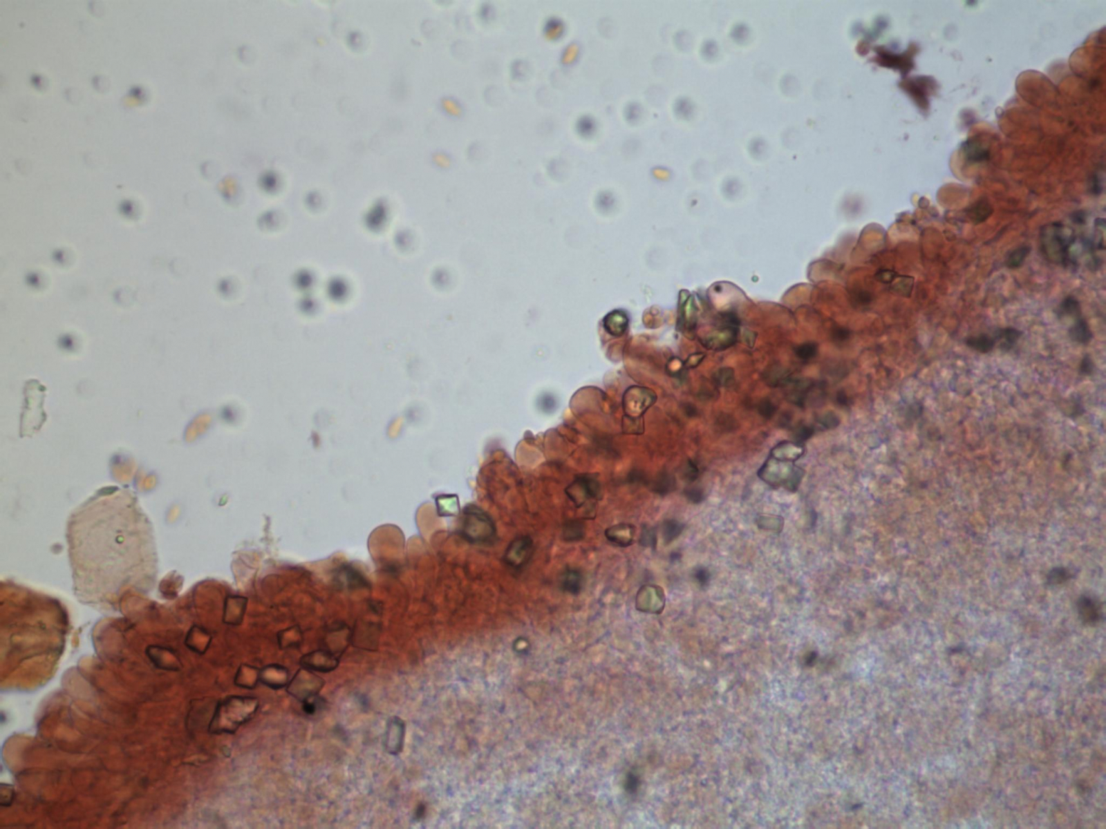 auf Deinen Mikrobildern sehe ich fast ausschließlich junge Basidien und keine Cheilos. Trenne mal ein Lamellenschneide so dünn wie nur möglich ab und beobachte zunächst ohne zu quetschen.