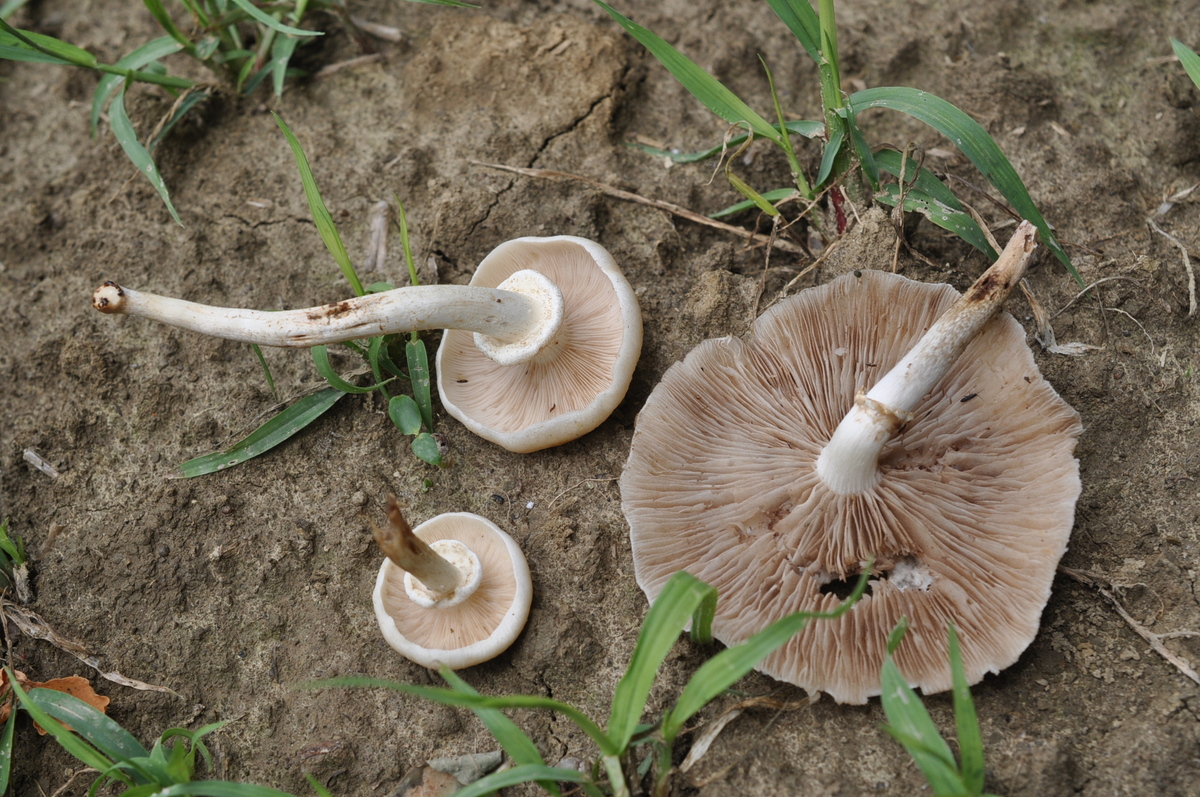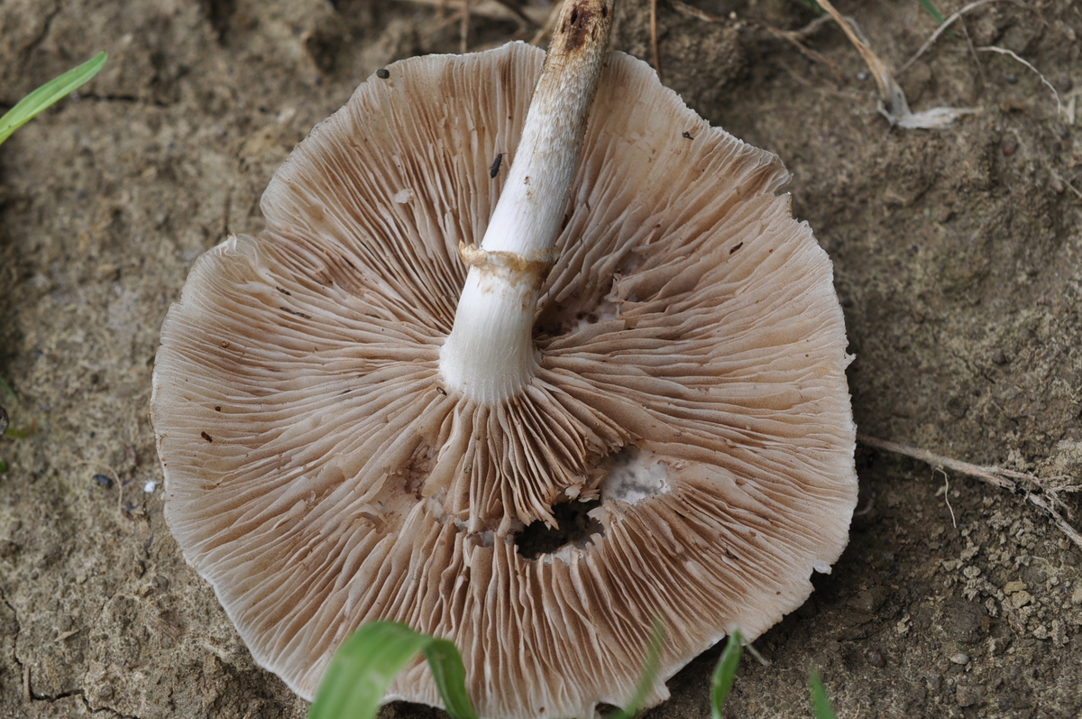 ja es wäre wirklich gut zu wissen, ob da ein Ring war oder nicht. An Marasmius oreaades glaube ich indes nicht. Ich hab den noch nie so büschlig wachsen sehen und erst recht nicht auf geschotterten Flächen. Das ist eine Wiesenart. Diese graulich-braune Lamellenfarbe passt da auch nicht dazu.