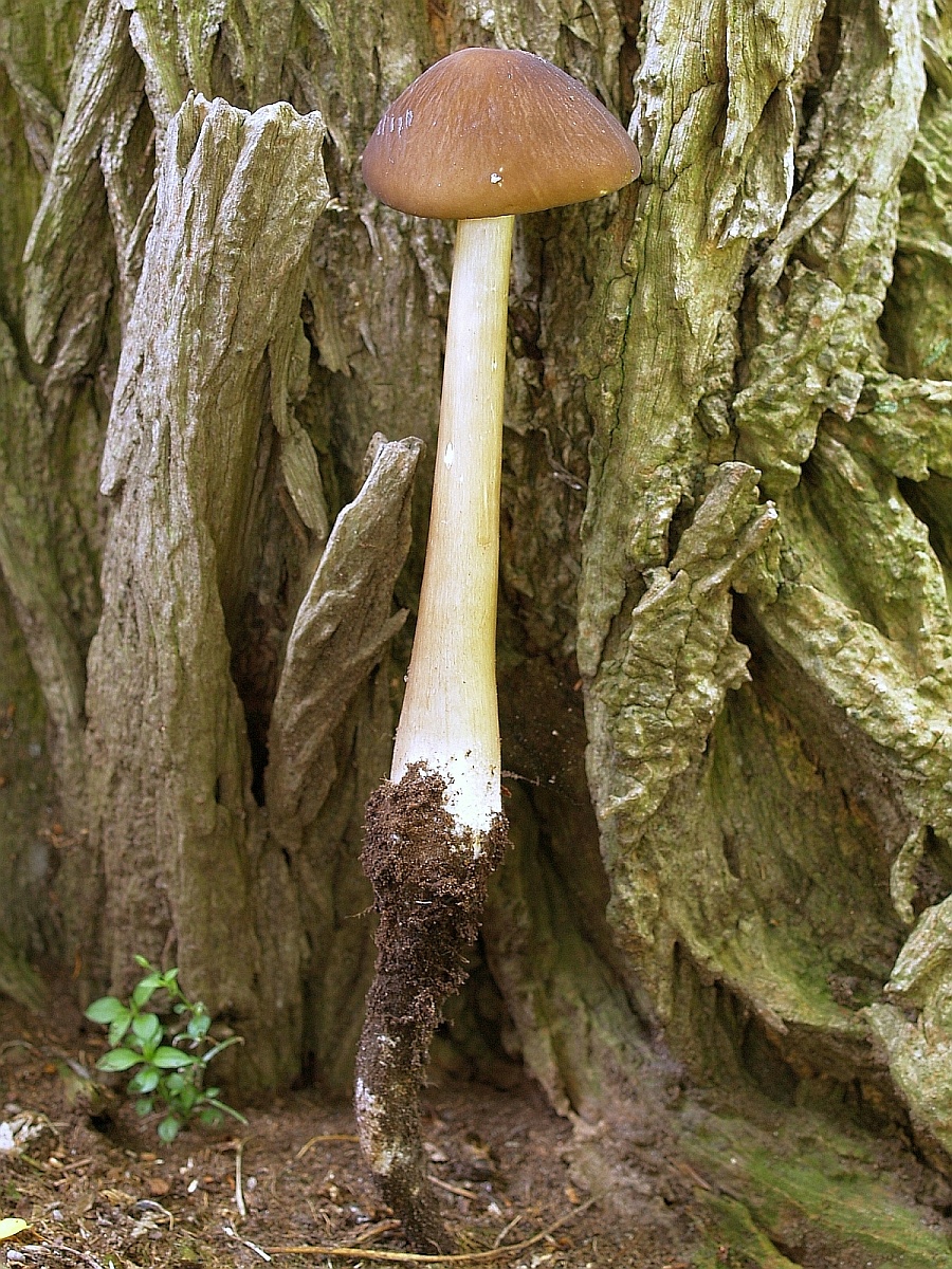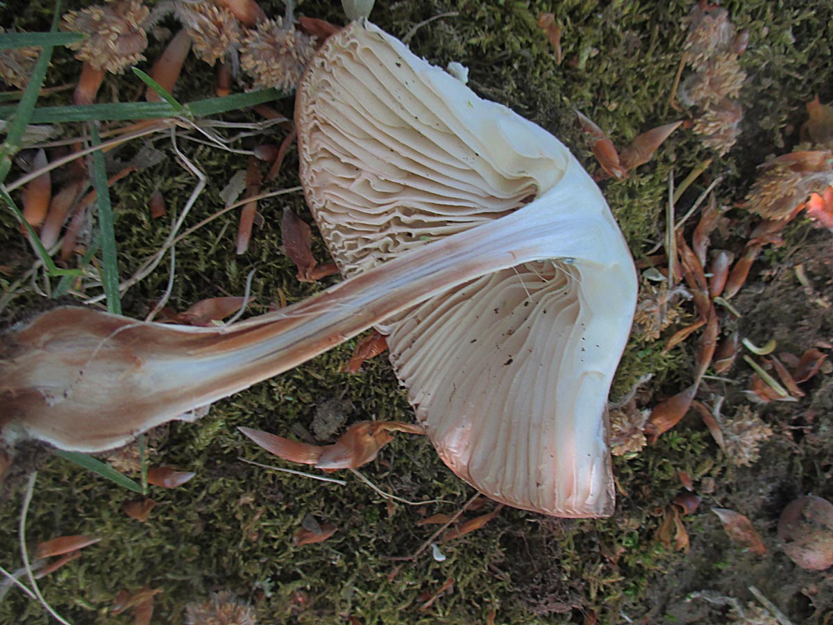 Ich dachte erst an Xerula radicata aber der sollte doch keine knollige Basis haben. Der Geruch war leicht süßlich.