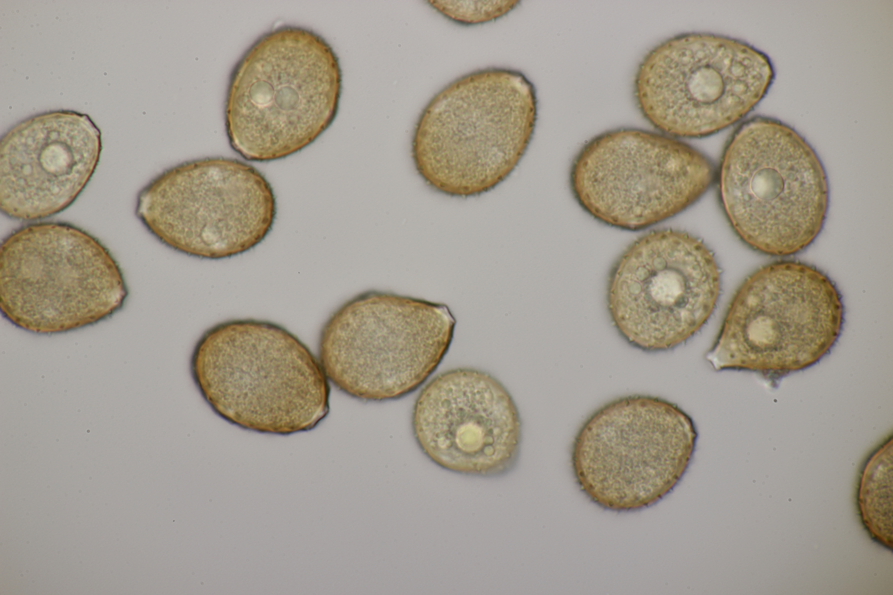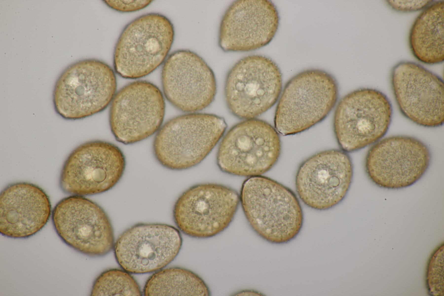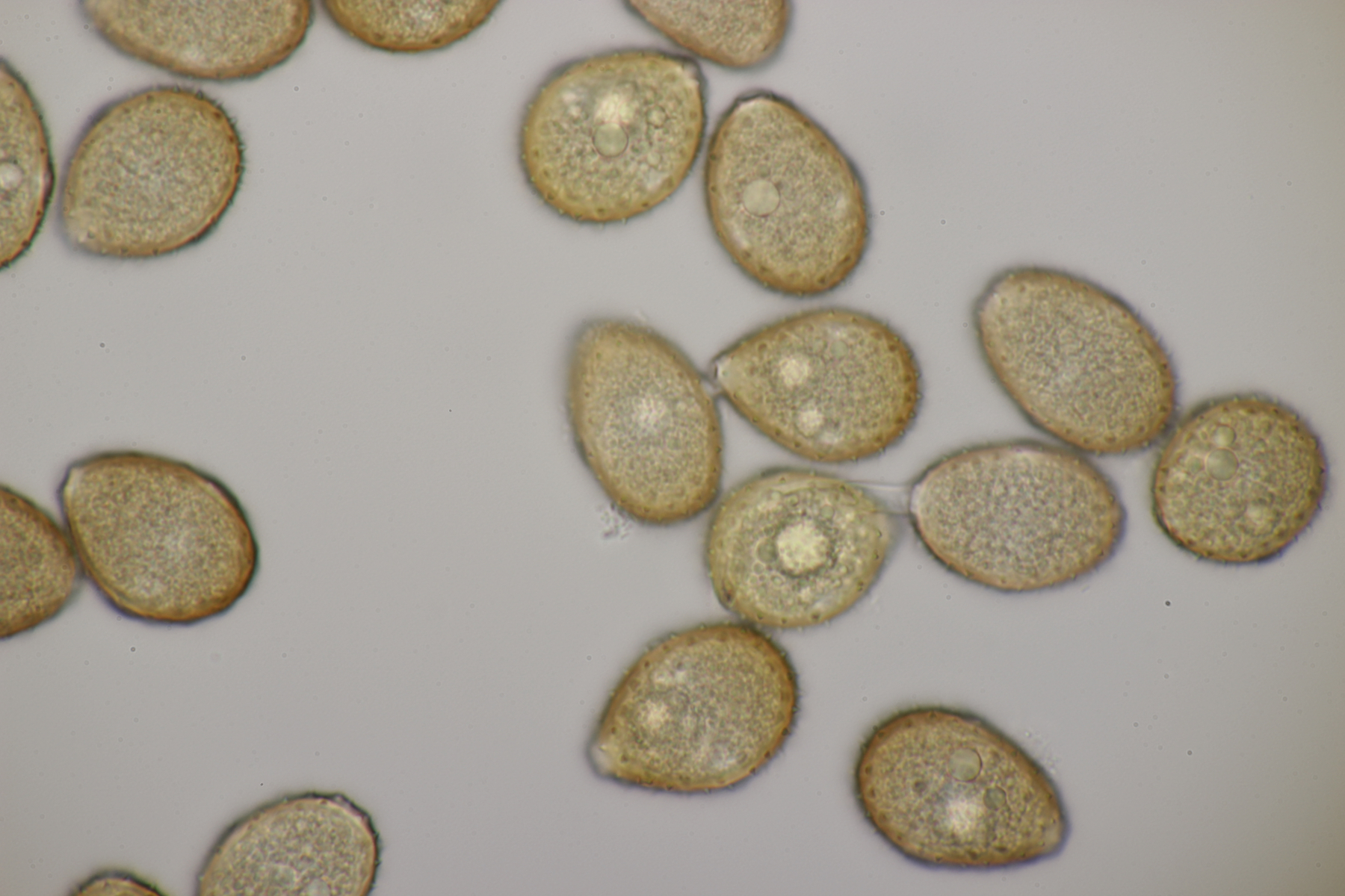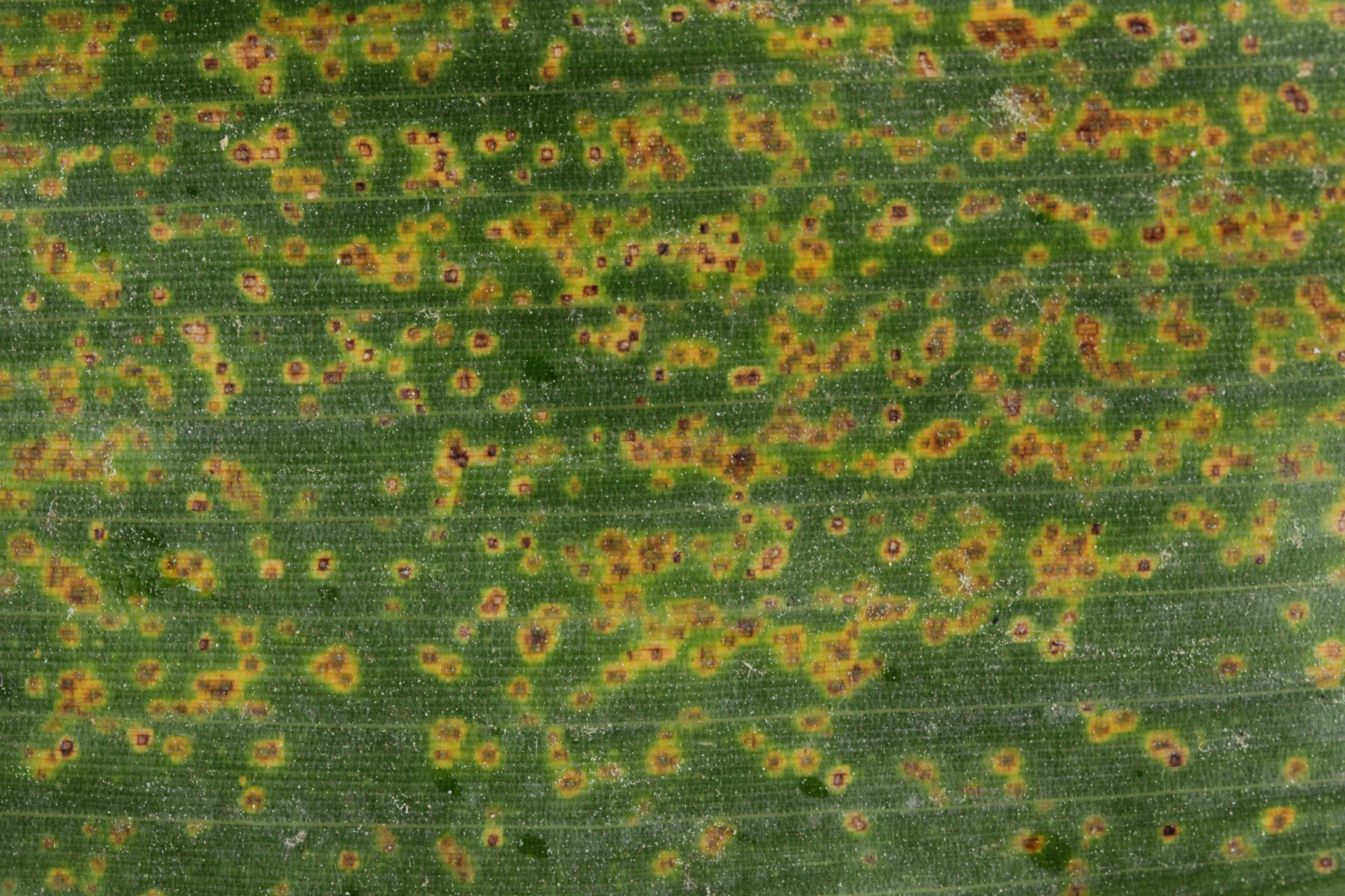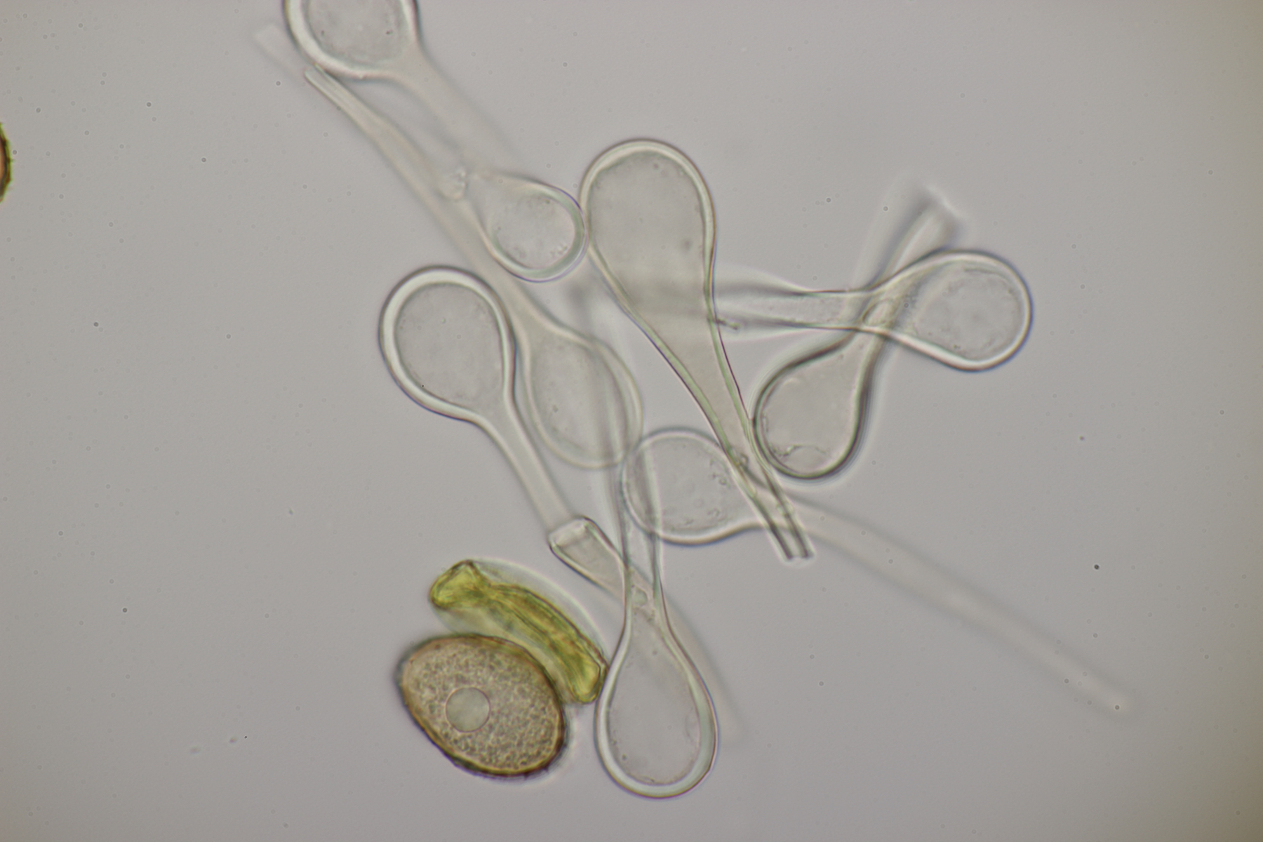 1. Keine Angst, der Klimawandel hat den Duisburger Stadtwald noch nicht in einen tropischen Bambuswald umgewandelt. Aber in einem Vorgarten und daraus hinaushängend gab es dann doch einen Bambus, der auch noch mit einem Rost befallen ist. Da es einerseits Uredien gibt und andererseits auch Telien, bei denen die Teliosporen eine ausgeprägte Spitze haben, geht das hier wohl in die Richtung Puccinia sasicola oder Puccinia longicornis.
