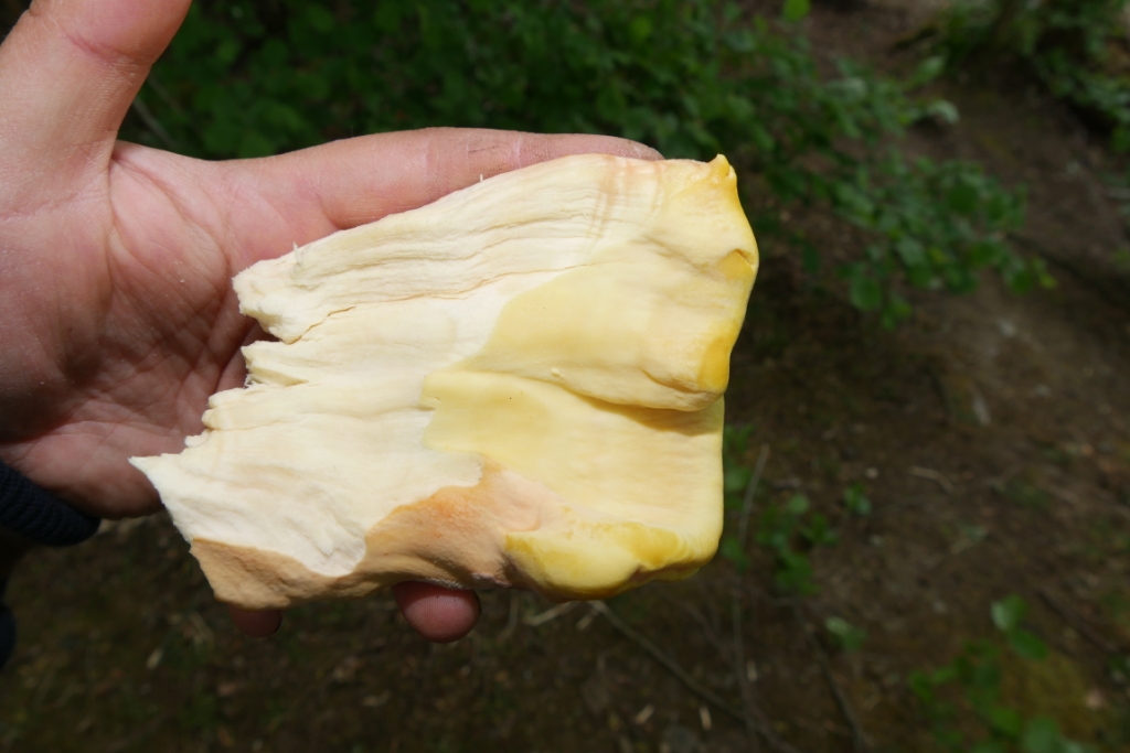 Ach echt? Waren die Schwefelporlinge schon zu faserig? Sehen eigentlich noch richtig schön und jung aus. Und ein bisschen Faser braucht doch sicher "Chicken of the wood".