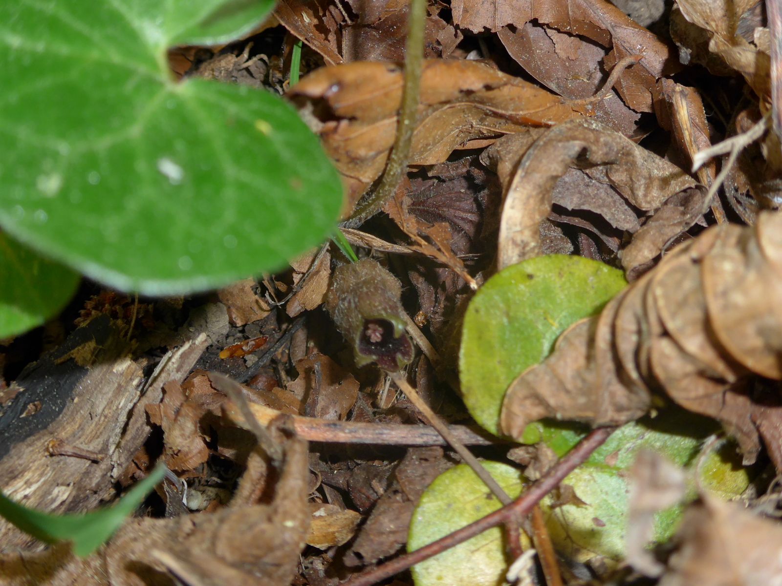Neu für mich; Asarum europaeum - Haselwurz; kannte Heidrun. Die Blüte der Pflanze sitzt an der Stängelbasis. So was hab ich auch noch nicht gesehen.