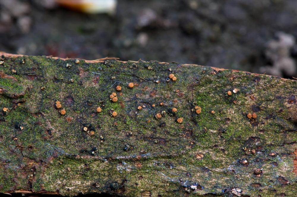 Mal sehen, vielleicht taucht die Teleomorphe noch auf oder sie ist noch irgendwo an dem Stamm.
