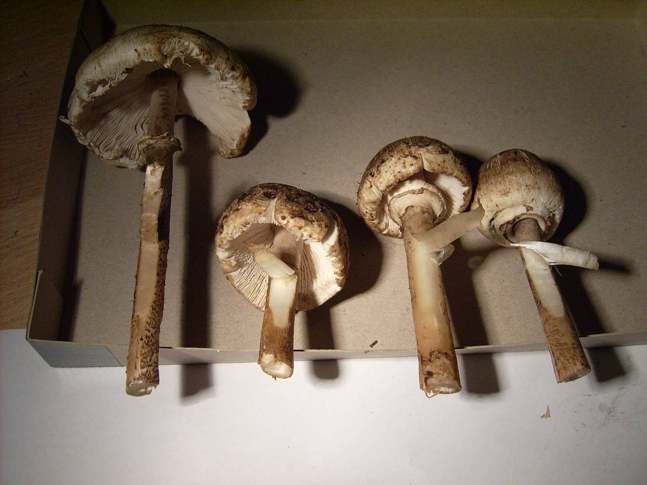 Mich würde brennend interessieren, wie ihr die folgenden Schirmlinge einschätzt, sie haben/hatten allesamt einen beweglichen Ring, alle Stiele haben auf dem Bild einen kleinen Anschnitt: