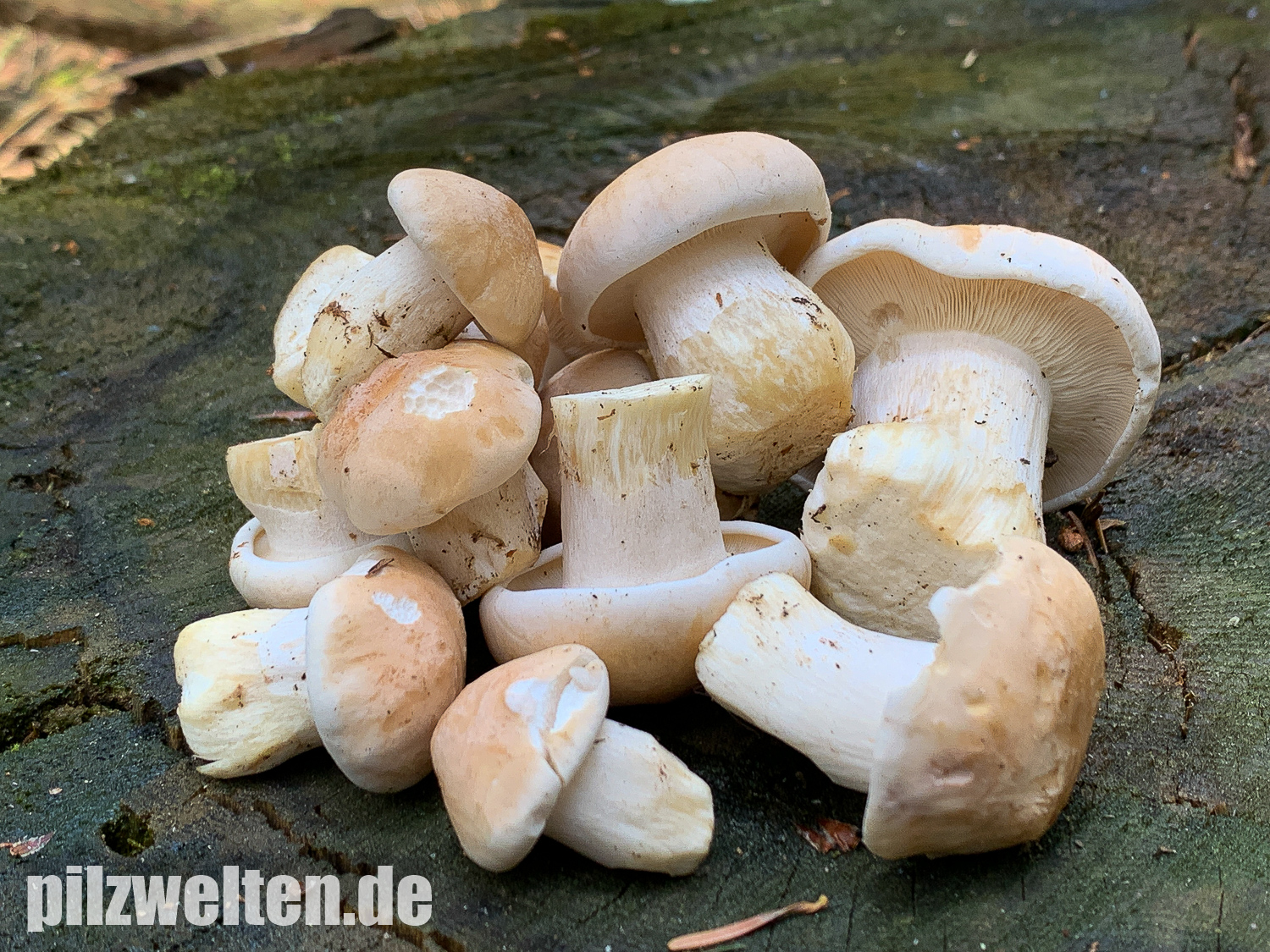 1 e) Den Abschluss machten wirklich wunderschöne, knackige, junge Mairitterling, Calocybe gambosa