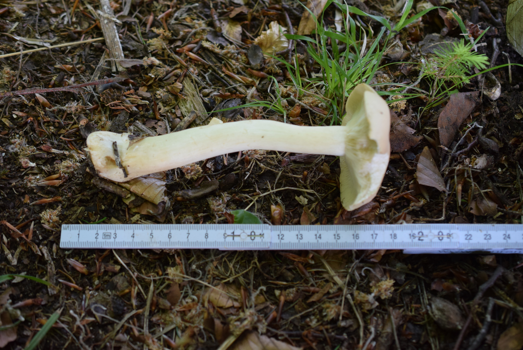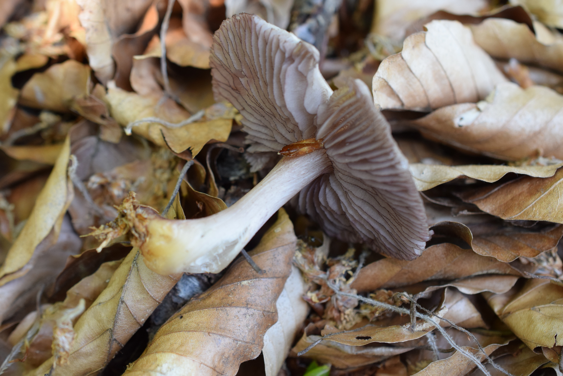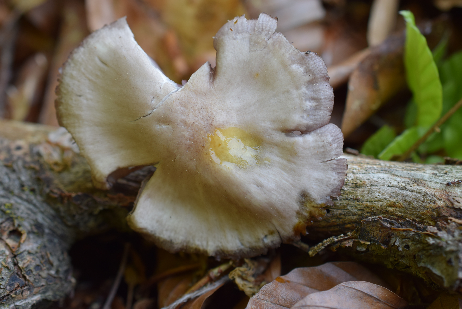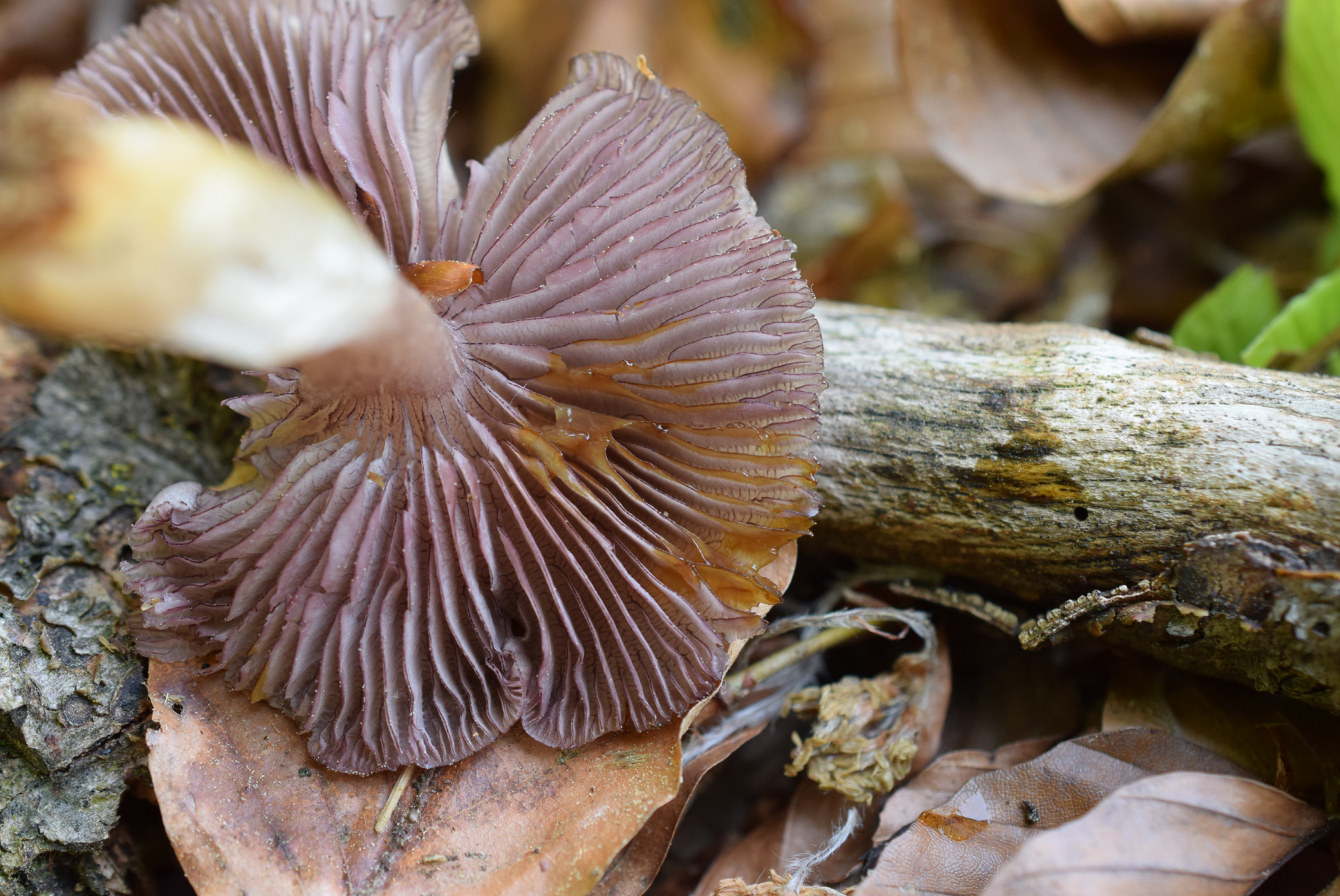 2. Die zweite Fund , ein Weißsporen Pilz . Wegen die Lamellenfarbe Interessant . Hab zuerst an Entoloma sp gedacht aber Sporenfarbe führen in andere Gattung ? So intensive Lamellenfarbe ?