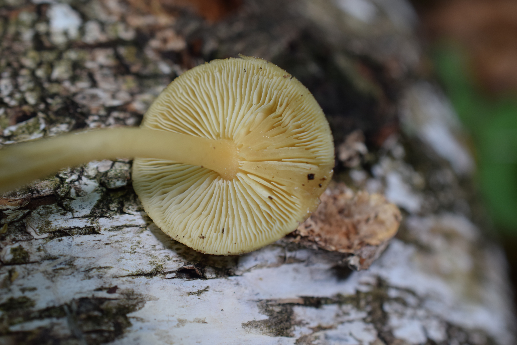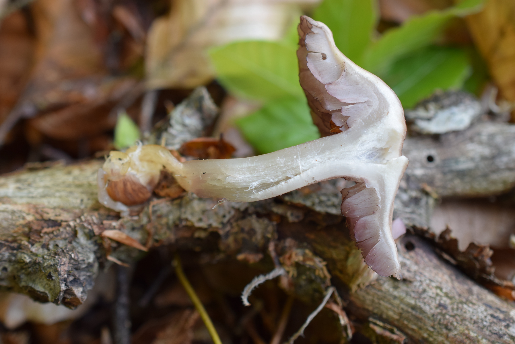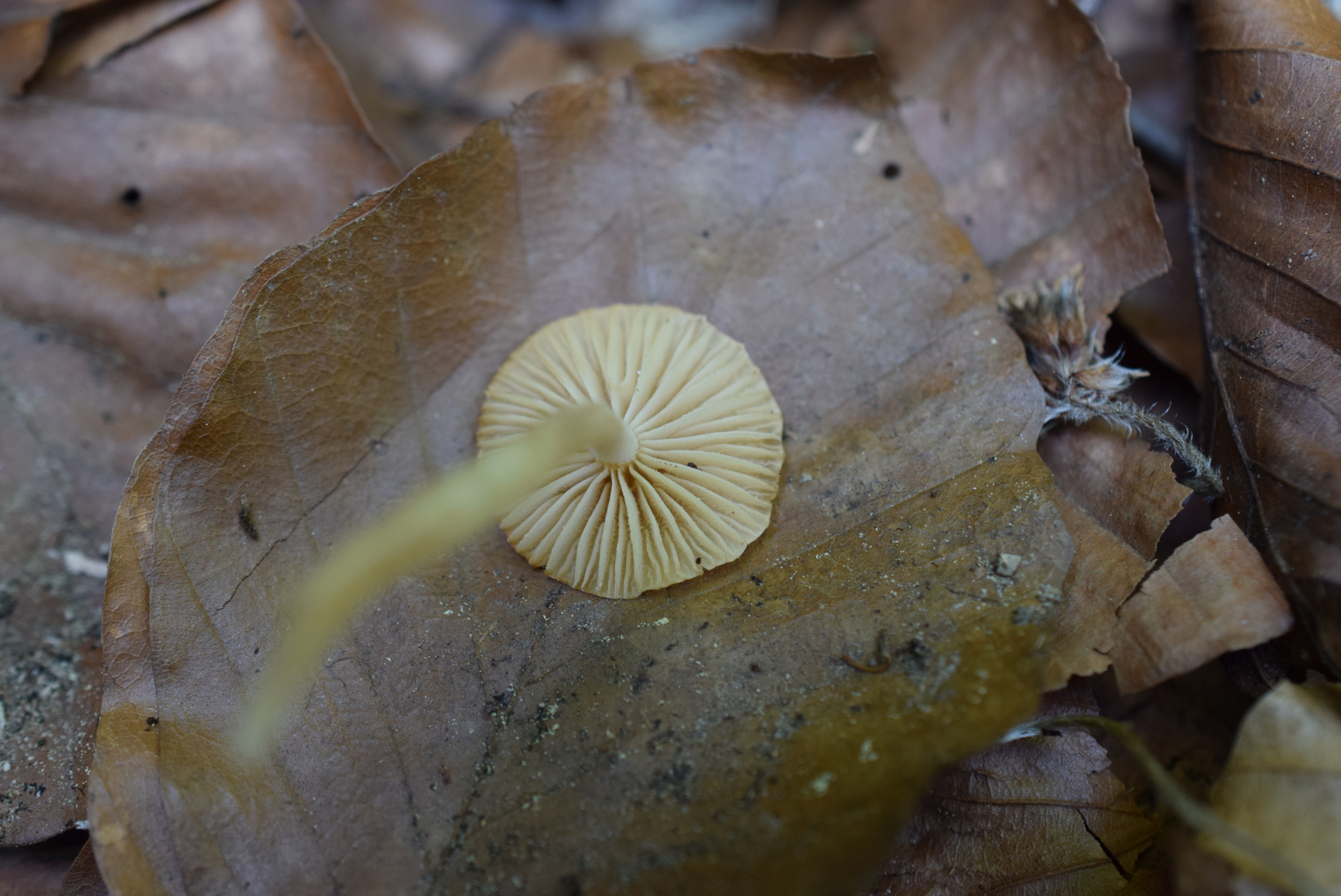 2. Die zweite Fund , ein Weißsporen Pilz . Wegen die Lamellenfarbe Interessant . Hab zuerst an Entoloma sp gedacht aber Sporenfarbe führen in andere Gattung ? So intensive Lamellenfarbe ?