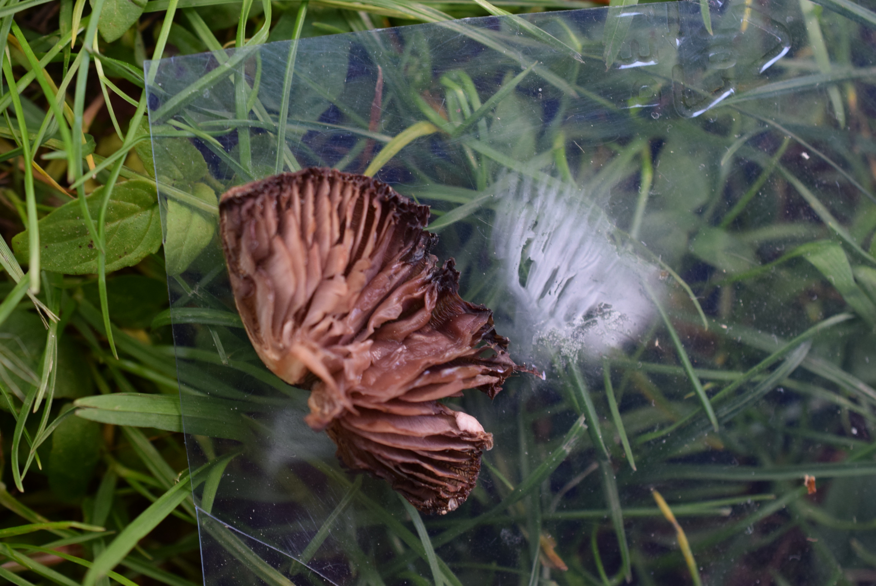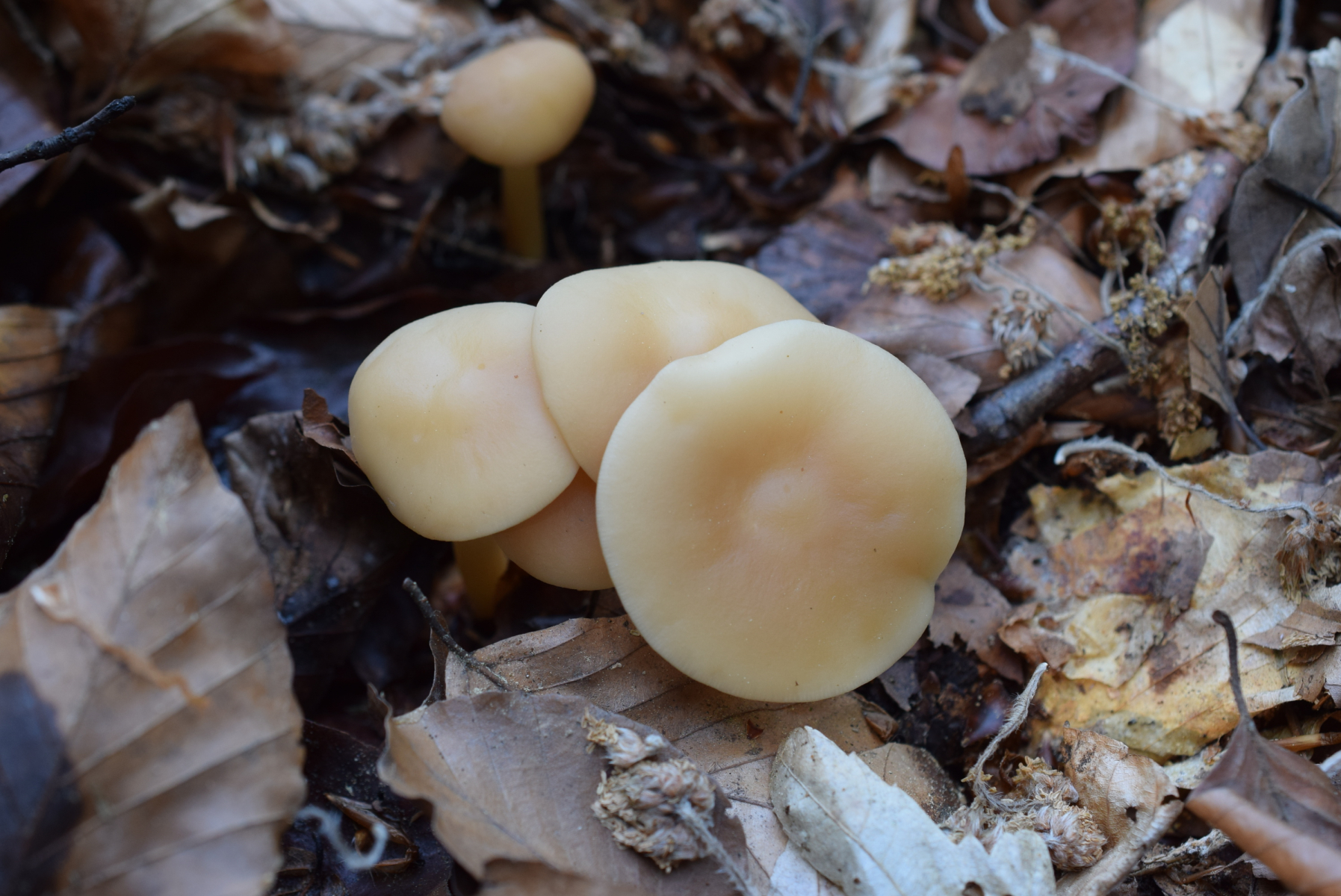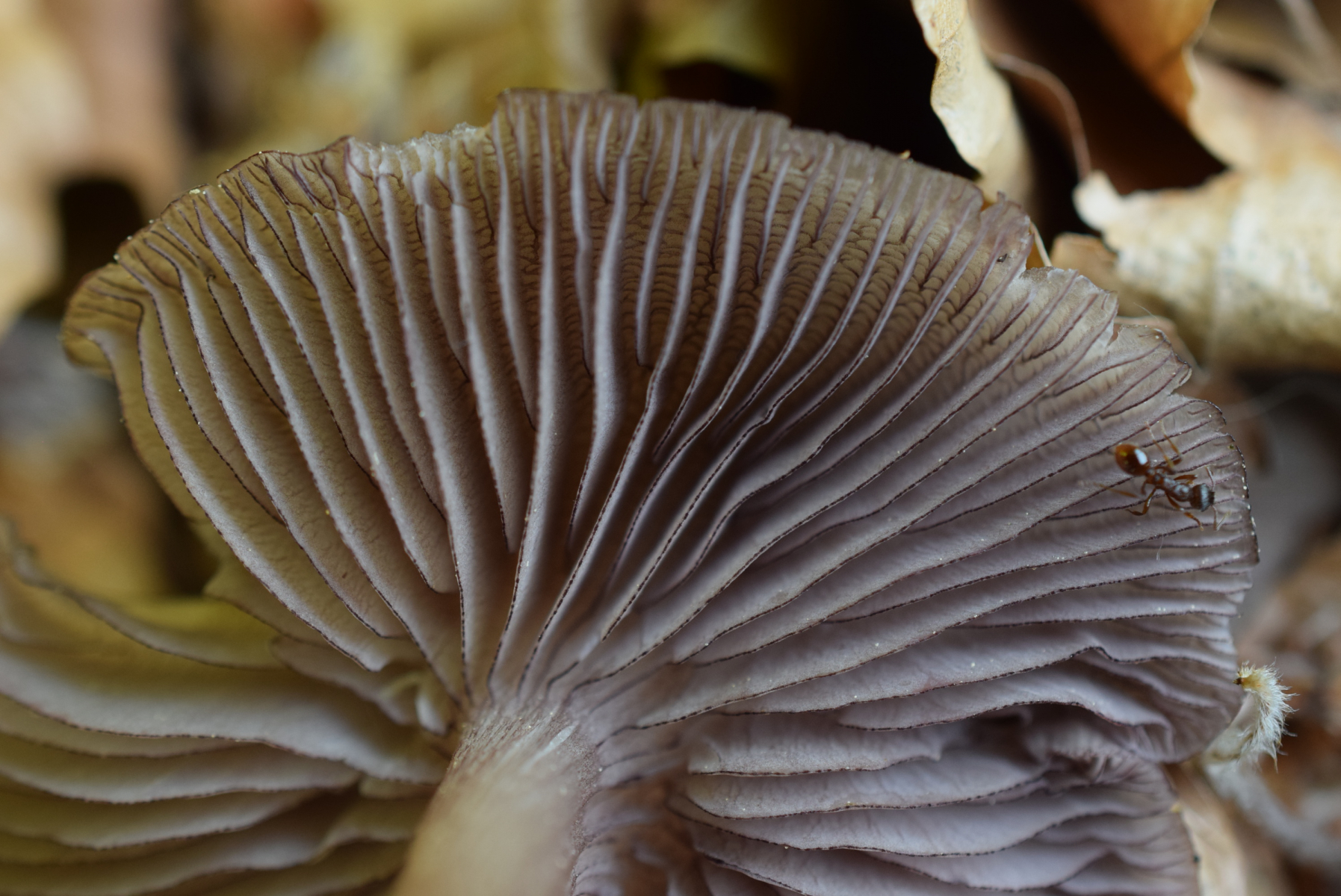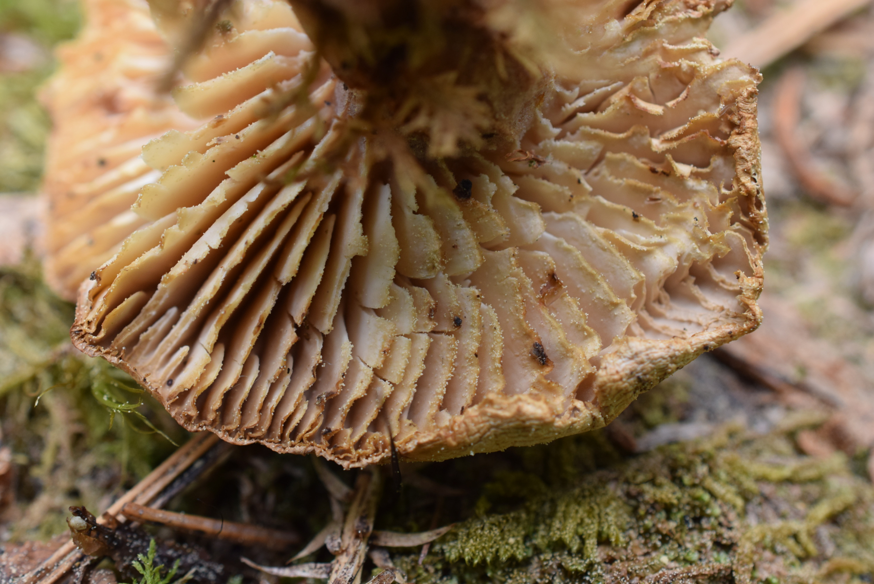 2. Die zweite Fund , ein Weißsporen Pilz . Wegen die Lamellenfarbe Interessant . Hab zuerst an Entoloma sp gedacht aber Sporenfarbe führen in andere Gattung ? So intensive Lamellenfarbe ?