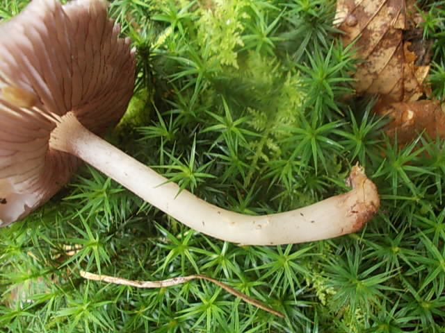 Interessant : Geschmack nach Rettich ( ähnlich an Mycena pura oder rosea ) . Auch Geruch ist etwas nach Rettich , zuerst schwach aber nach Schnitt etwas Intensiv . KOH Reaktion siehe Biler . Mycena , schwer zu sagen etwas ungewöhnlich für diese Gattung irittiert mich Hut bei größte Exemplar ( vielleicht außgeblassen ) oder ? . auch für Clitocybe ungewöhnlich . Es war 4 Exemplaren ein neben andern .