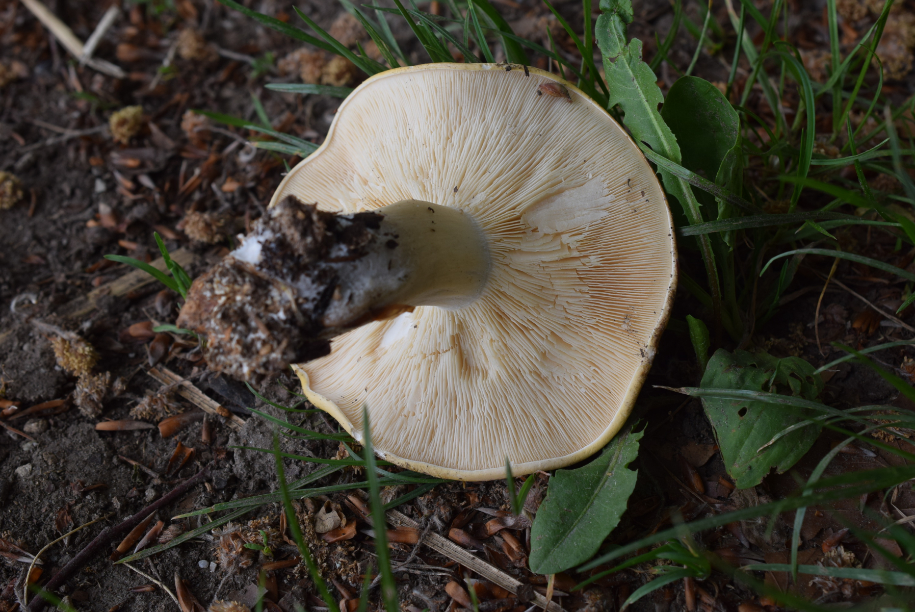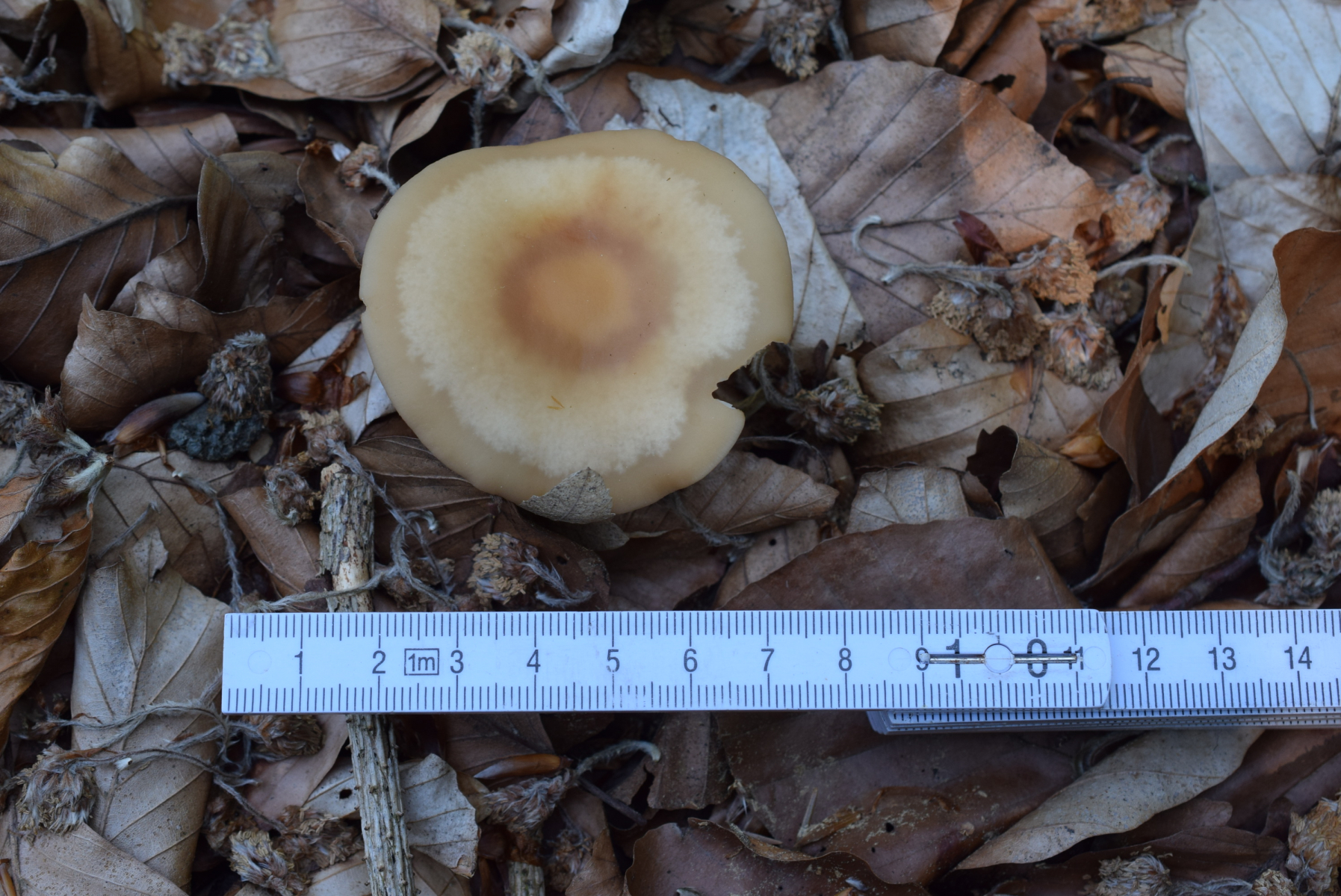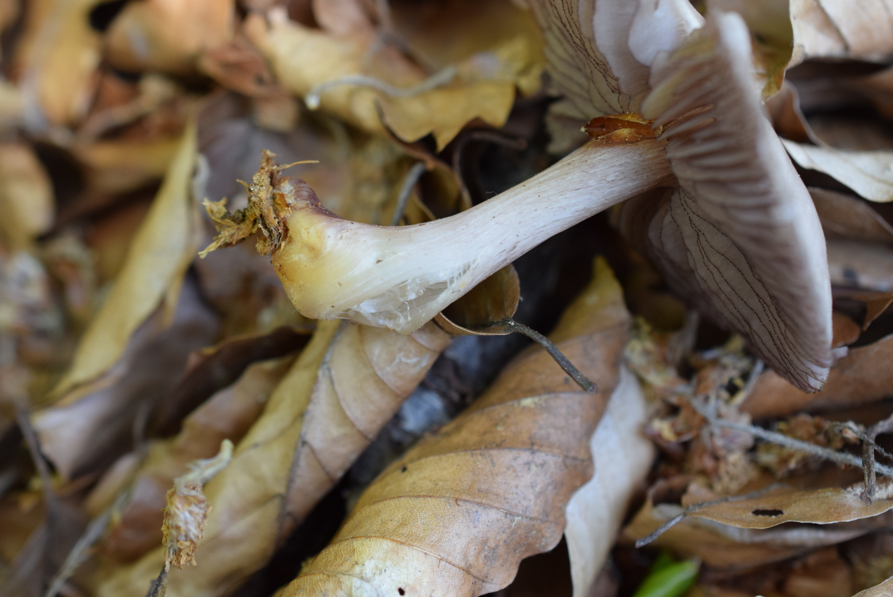 2. Die zweite Fund , ein Weißsporen Pilz . Wegen die Lamellenfarbe Interessant . Hab zuerst an Entoloma sp gedacht aber Sporenfarbe führen in andere Gattung ? So intensive Lamellenfarbe ?