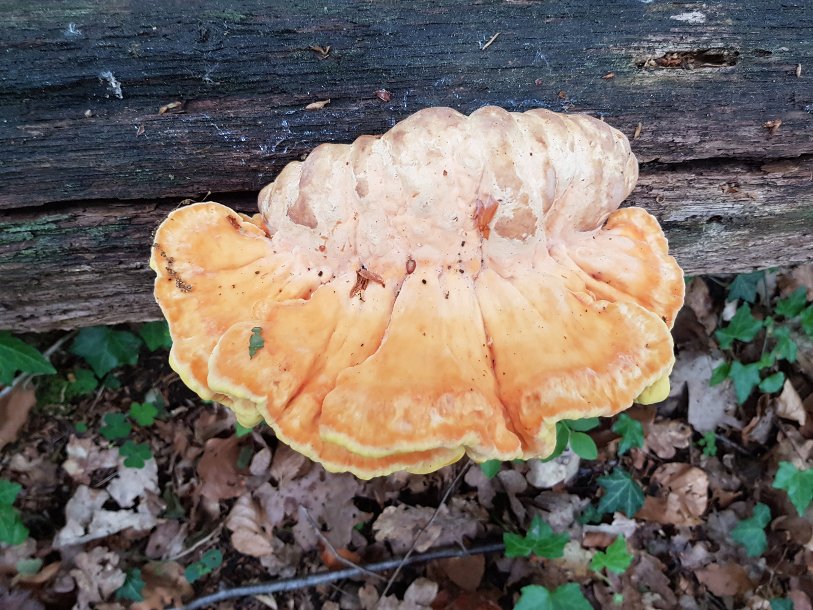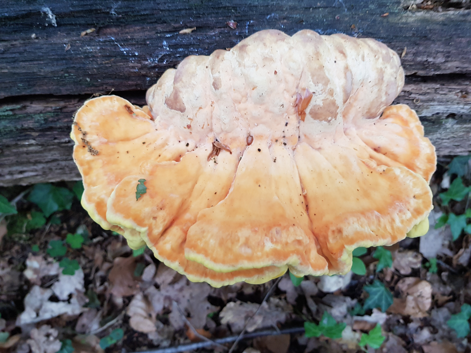 Habe heute mal einen Streifzug durch den Wald unternommen und das folgende Expemlar gefunden. Ich denke, dass ich da einen Schwefelporling gefunden habe. Was mich aber irritiert ist die Tatsache, dass ich diese Art bislang immer nur an lebenden Bäumen oder an Bäumen, die kurz zuvor umgestürzt waren, gefunden habe, dieser Pilz aber an so richtig totem Totholz wächst. Auch Bilder im Netz zeigen Schwefelporlinge fast nur an noch lebenden Bäumen. Ich selbst beschäftige mich erst seit letztem Herbst mit Pilzen. Deshalb würde ich mich freuen, wenn jemand von den erfahreneren Experten kurz etwas dazu schreiben könnte.