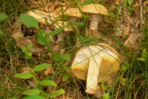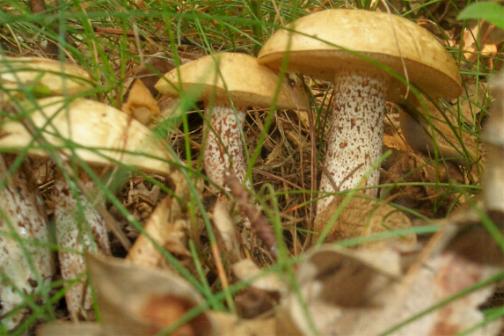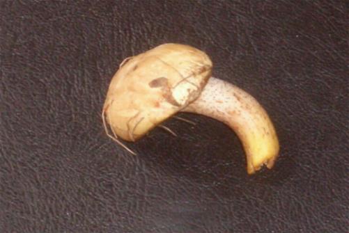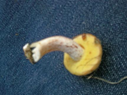 ich habe heute abend einen mir unbekannten röhrling gefunden. während die anderen pilze schon schmoren, habe ich diesen letztlich nicht klar identifizieren können. leider gibt meine digitalkamera nicht viel her, unten sollten 2 verschwomme bilder zu sehen sein. ich habe ihn noch analog fotografiert, aber da dauert die fotoentwicklung einige zeit. die oberseite ist weißlich bis hellgrau, absolut keine tendenz zu dunkler farbe oder braun. die röhren sind gelb, der stiel ist überall gleich dick, weiß und rot gesprenkelt.