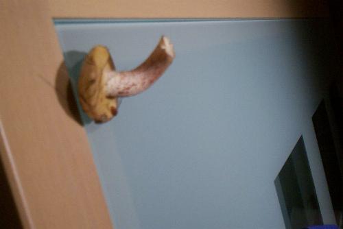 mit einer geliehenen kamera habe ich nun noch ein paar etwas bessere fotos, der pilz ist aber auch schon 15 stunden geschnitten. beim nächsten mal lass ich ihn stehen und nehme eben gleich die kamera mit, nimmt ja nicht viel platz weg.