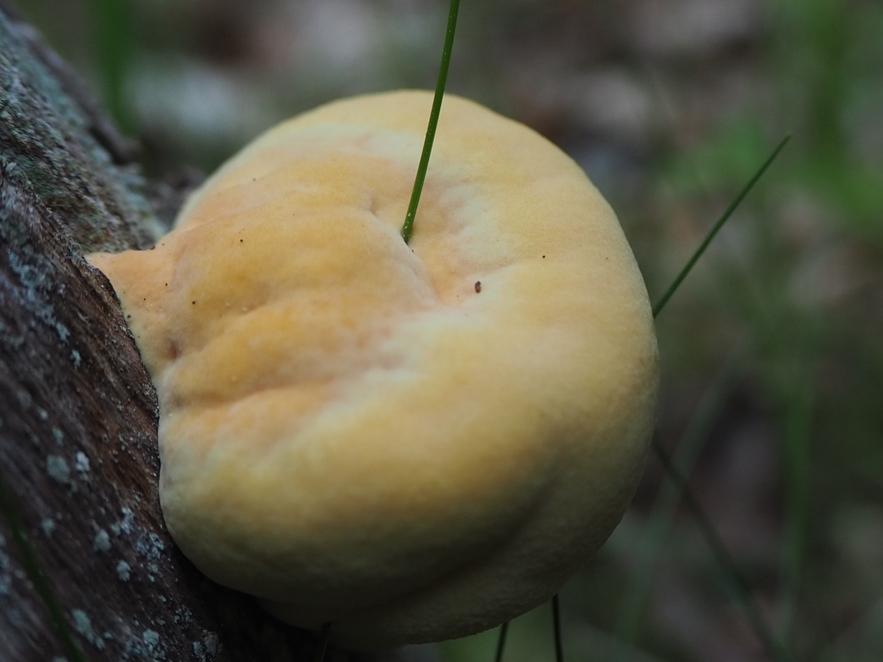 Hab das erst fuer einen Schleimpilz gehalten. Heute ging's dann wieder in die Ecke und inzwischen bin ich mir ziemlich, dass es sich um einen sehr jungen Schwefelporling handelt.