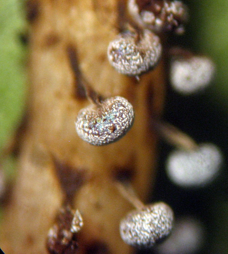 Aber Deine Mikrofotos zeigen die Kalkknoten des Capillitiums die mehr unregelmäßig eckig sind und das Capillitium vernetzt ist. Ph. nutans hat dagegen schmal spindelige Kalkknoten und das Capillitium ist mehr strahlig zur Peride ausgebildet, weniger vernetzt.