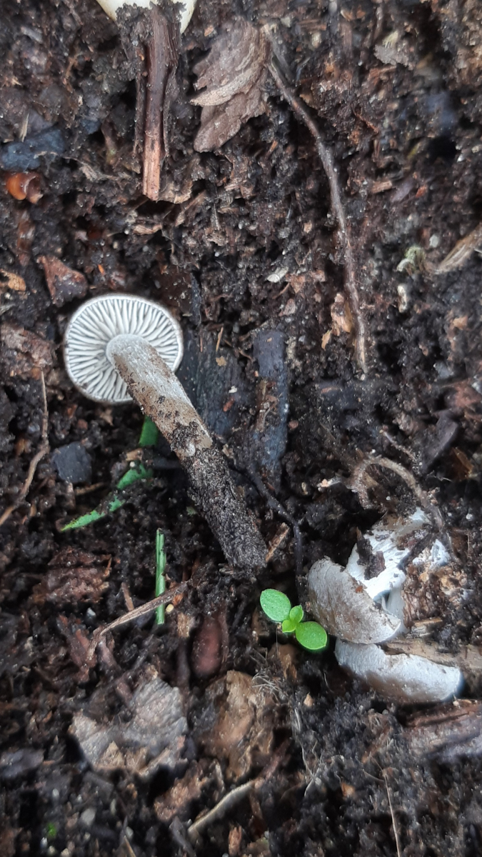 ohne weitere Angaben wie z.B. Sporenpulverfarbe wird der Pilz wohl nicht bestimmbar sein. Ohne die siderophile Granulation ist die Gattung Tephrocybe meines Wissens nach nicht sicher festzunageln.