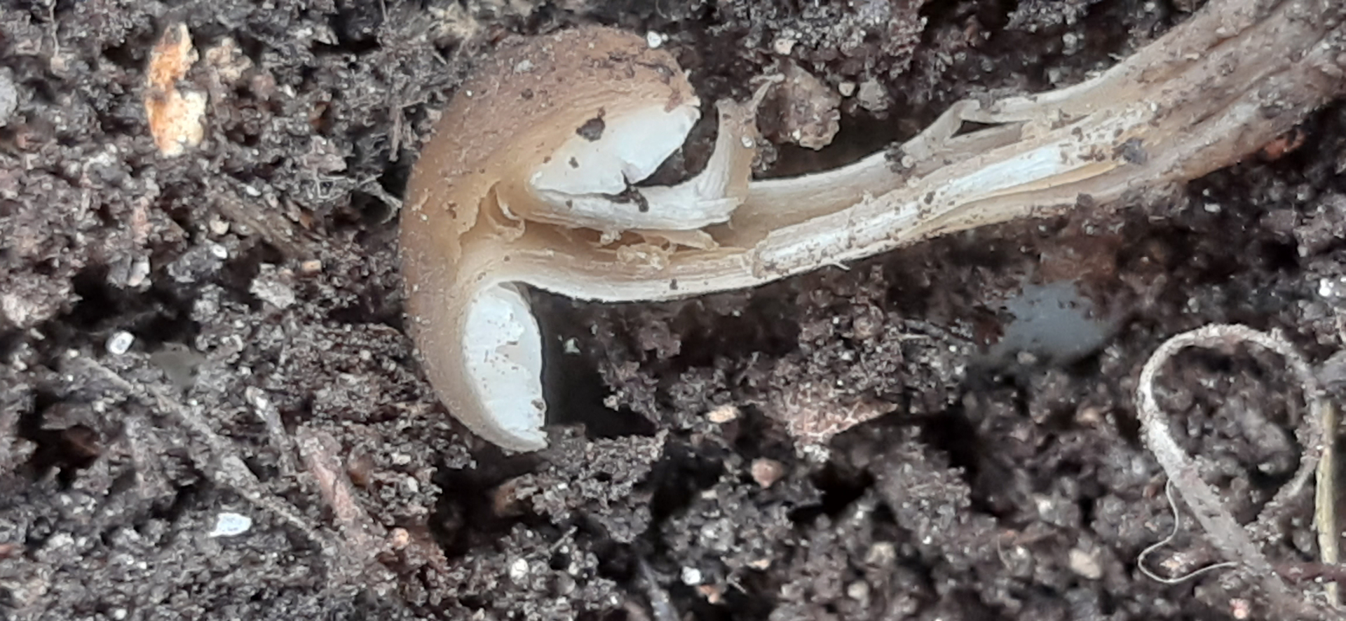 Gestern beim Unkraut jäten bin ich auf kleine Pilzchen auf der Erde gestoßen.