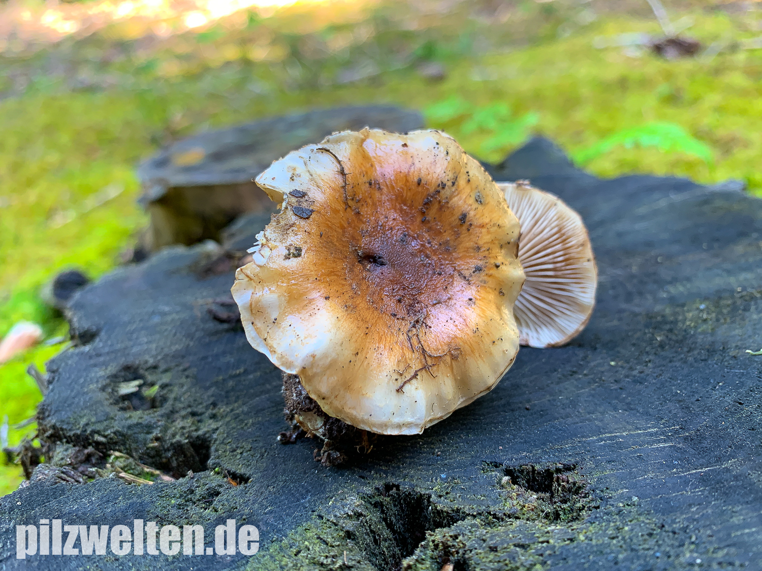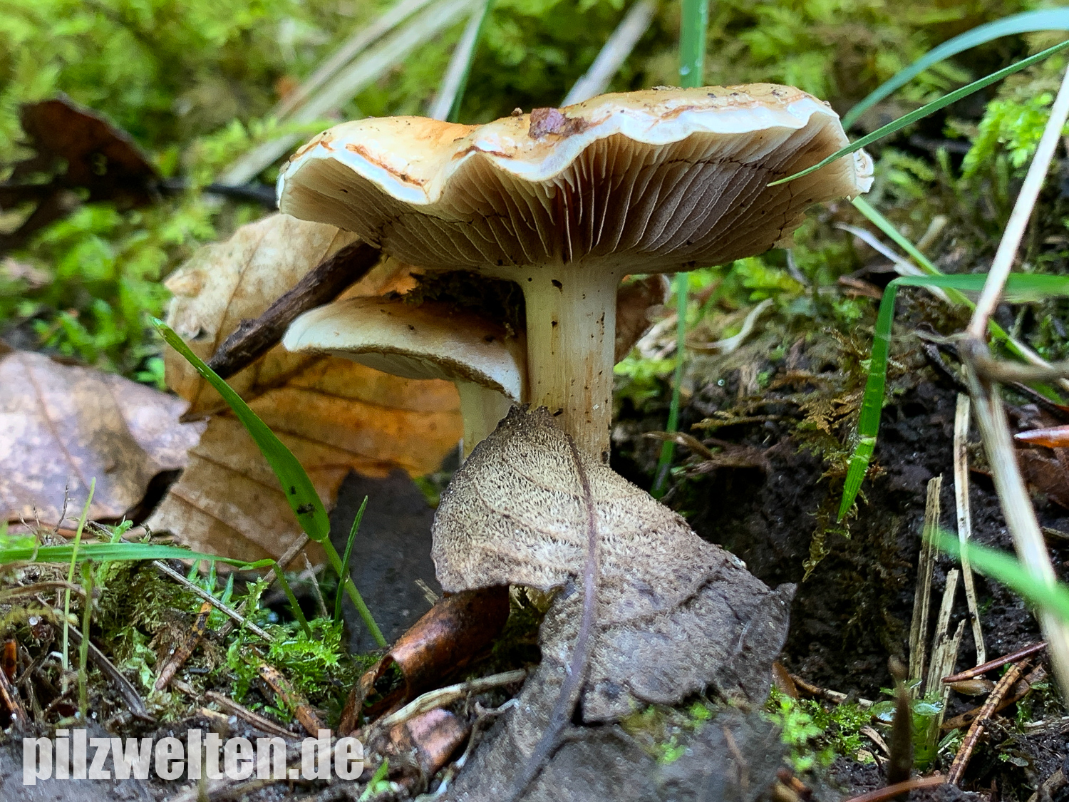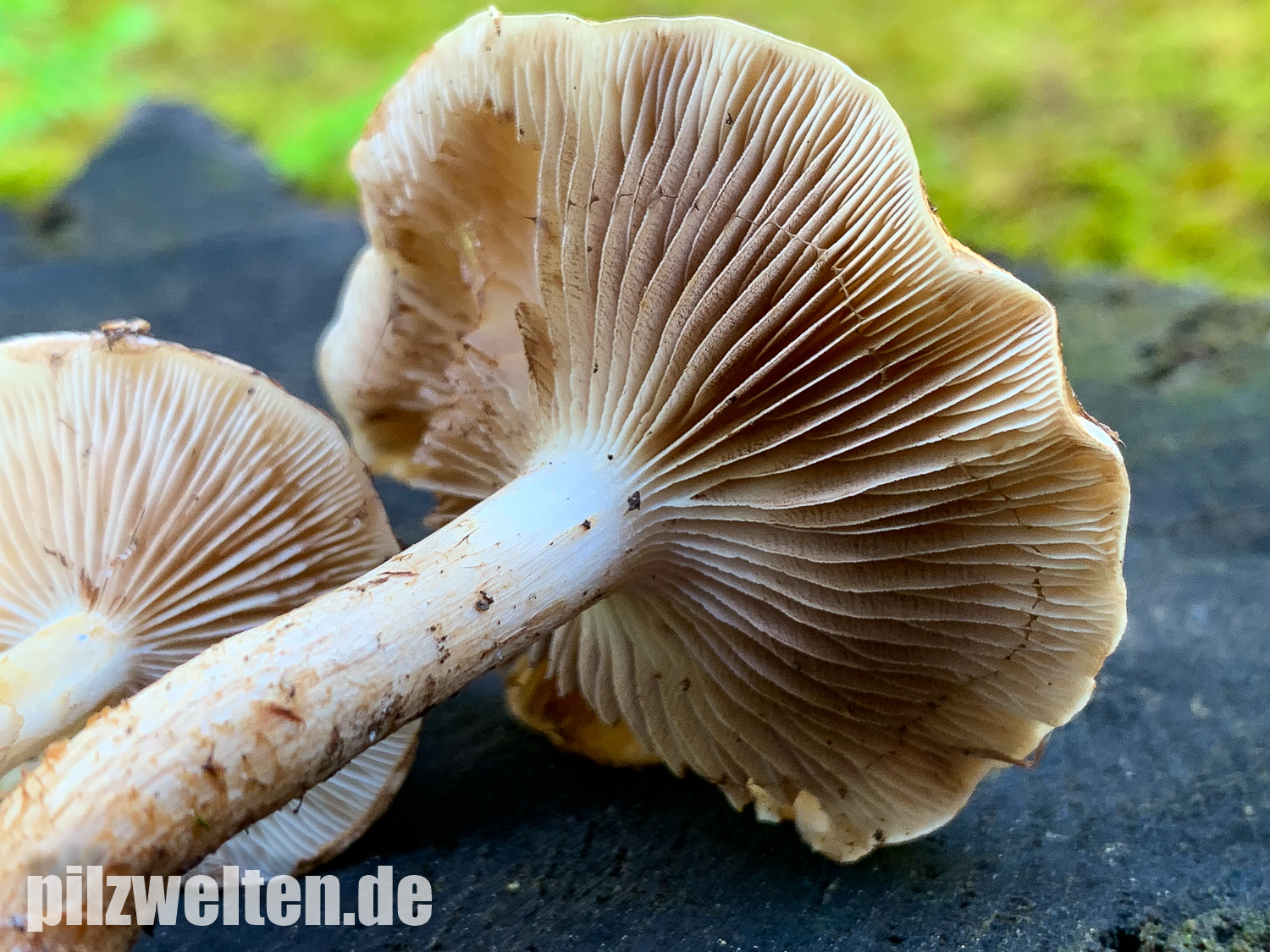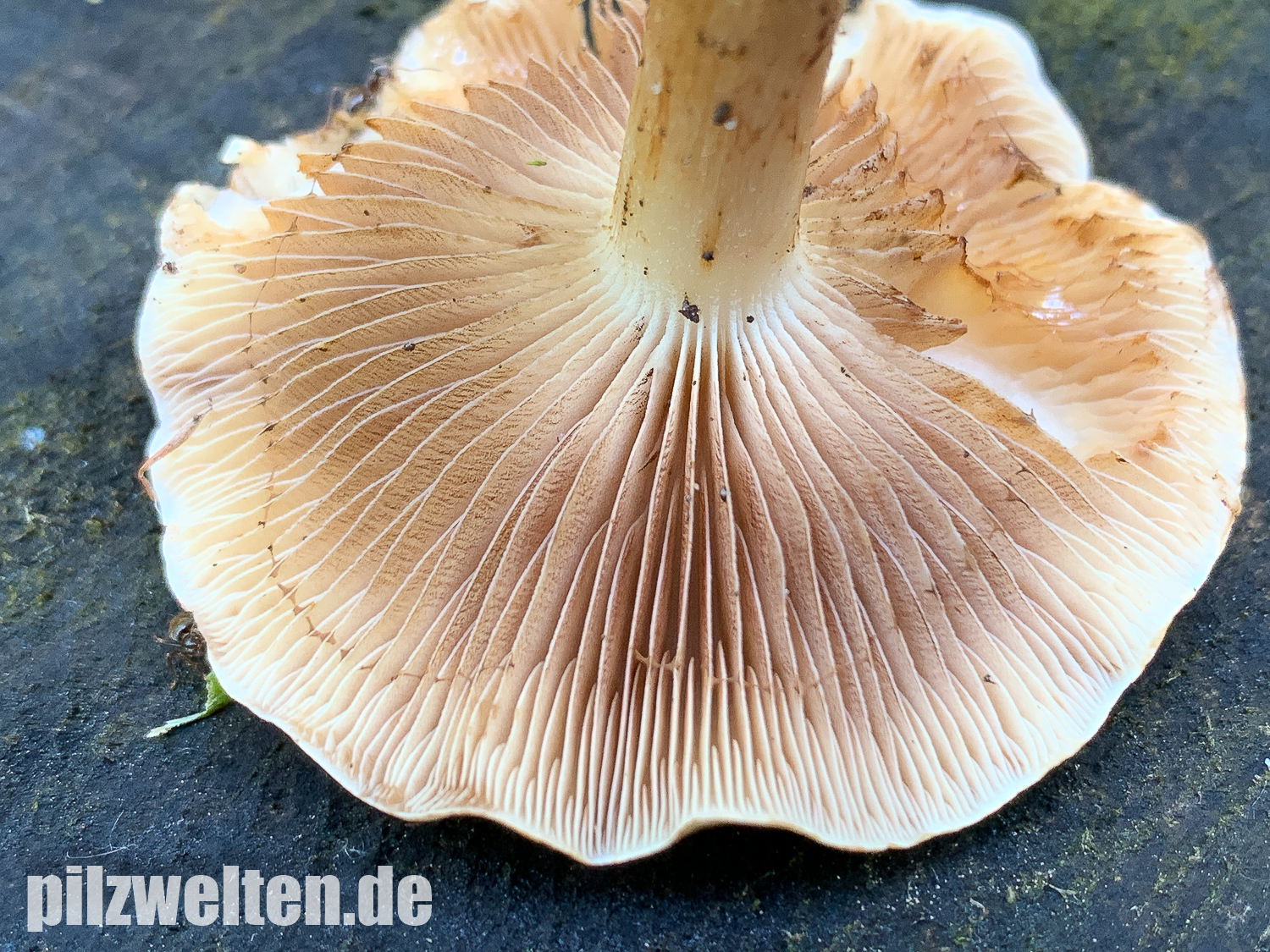 - Lamellen deutlich am Stiel angewachsen