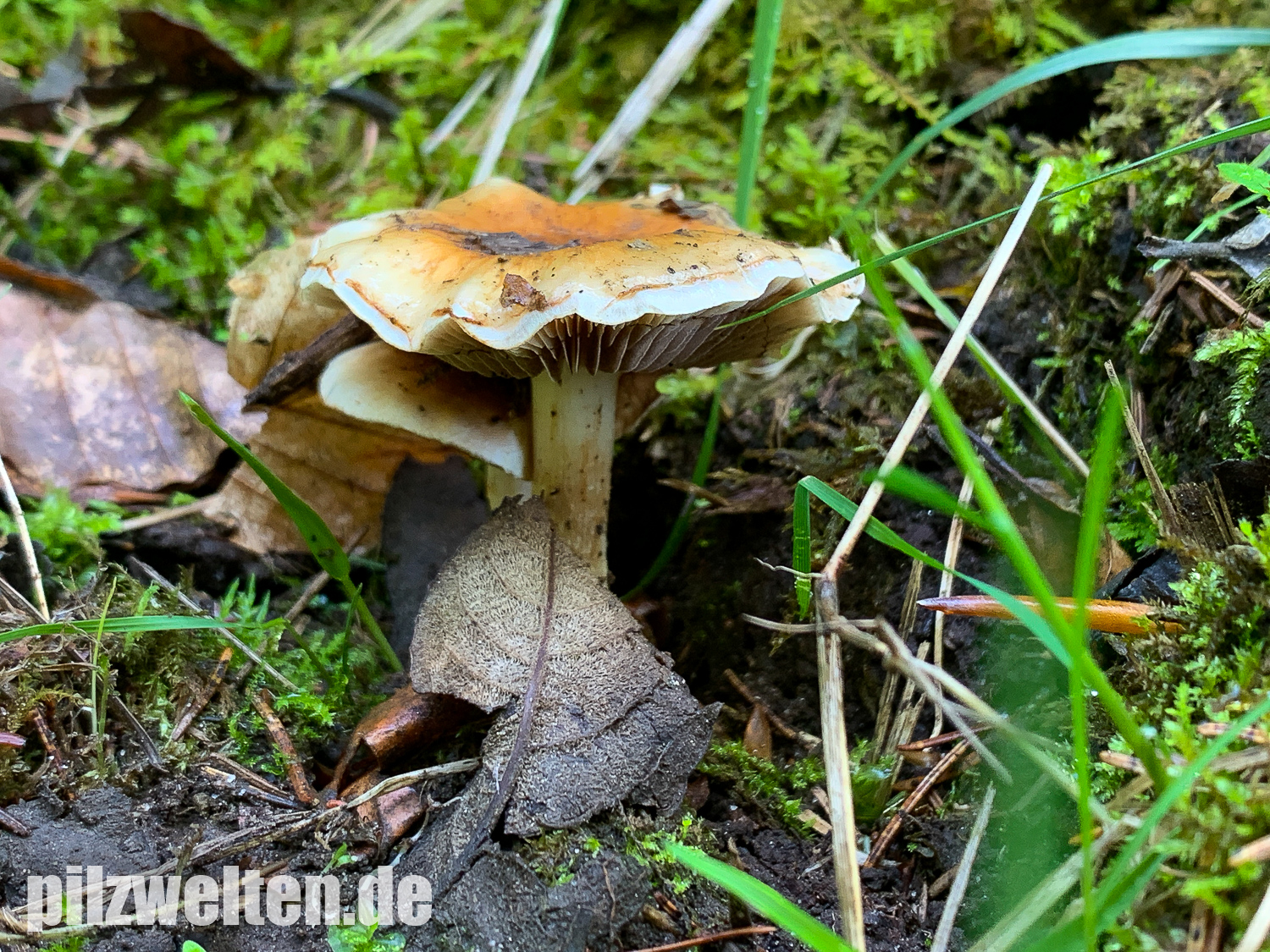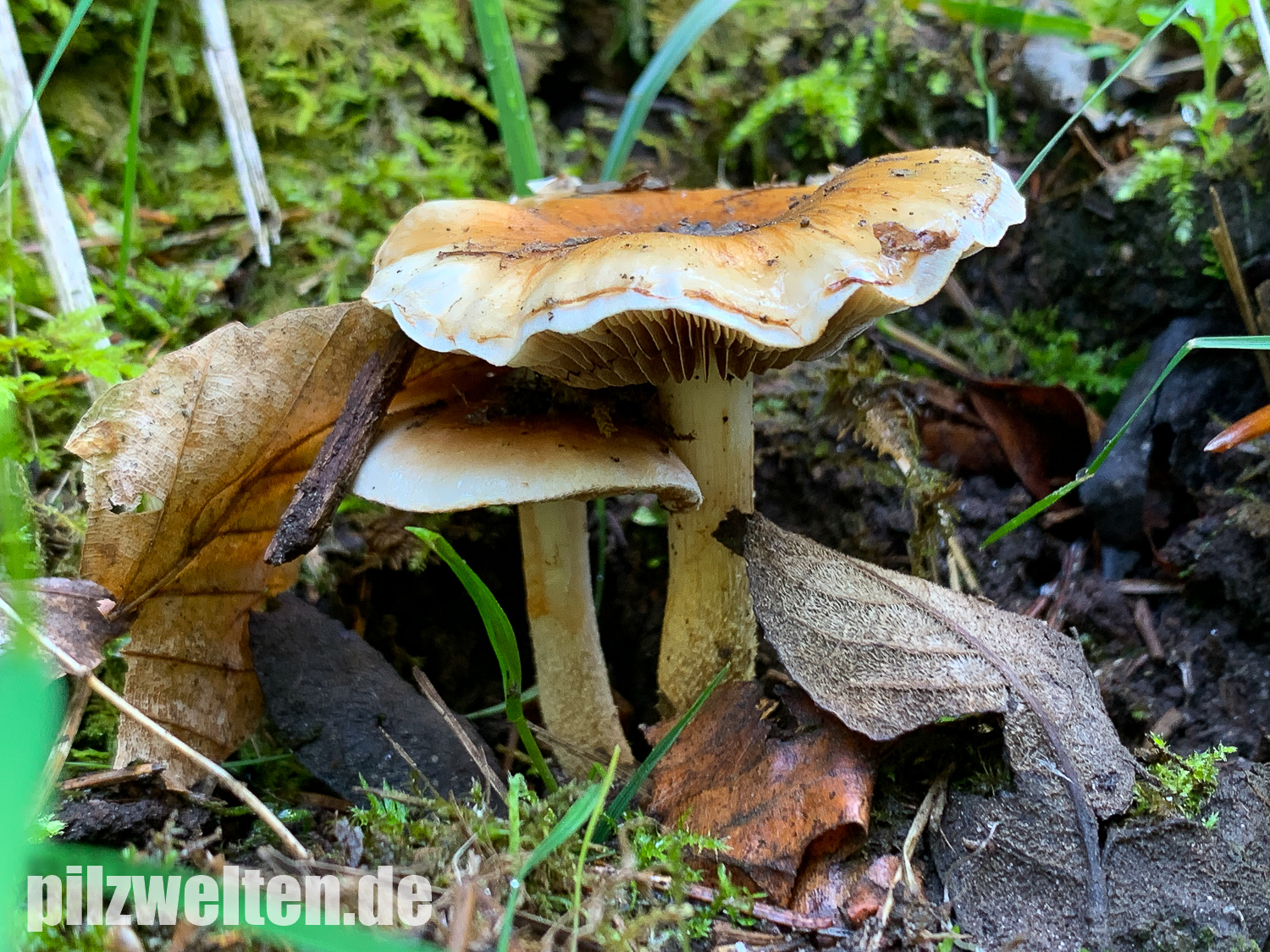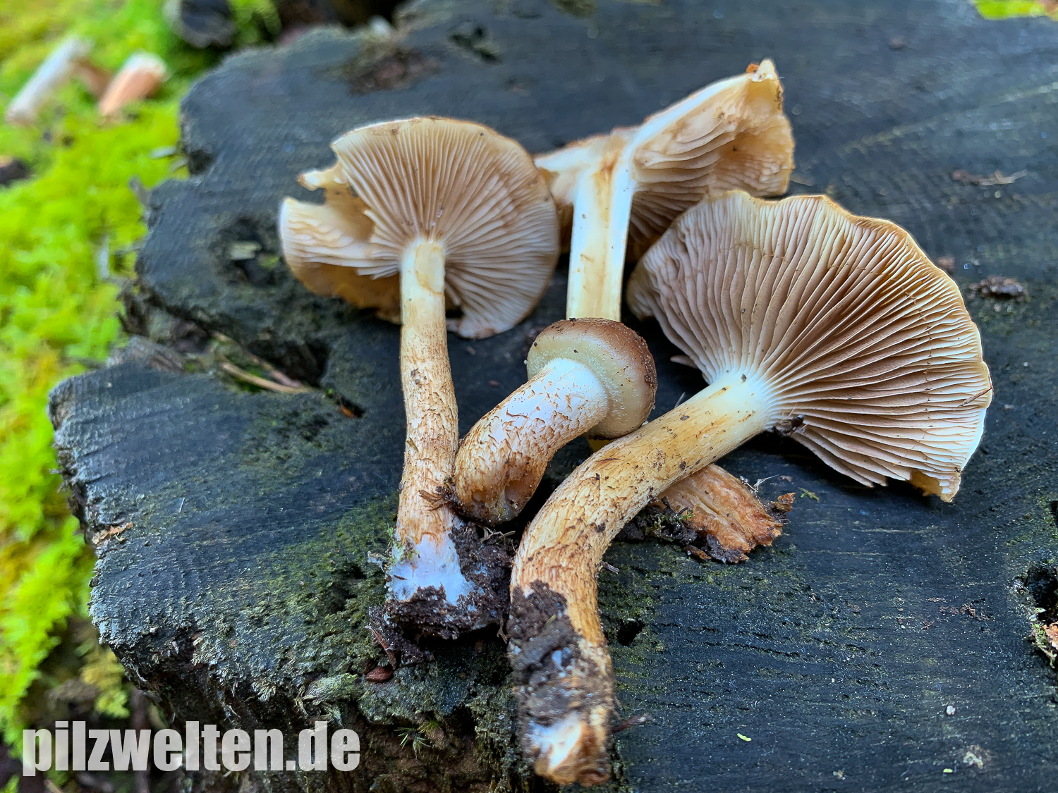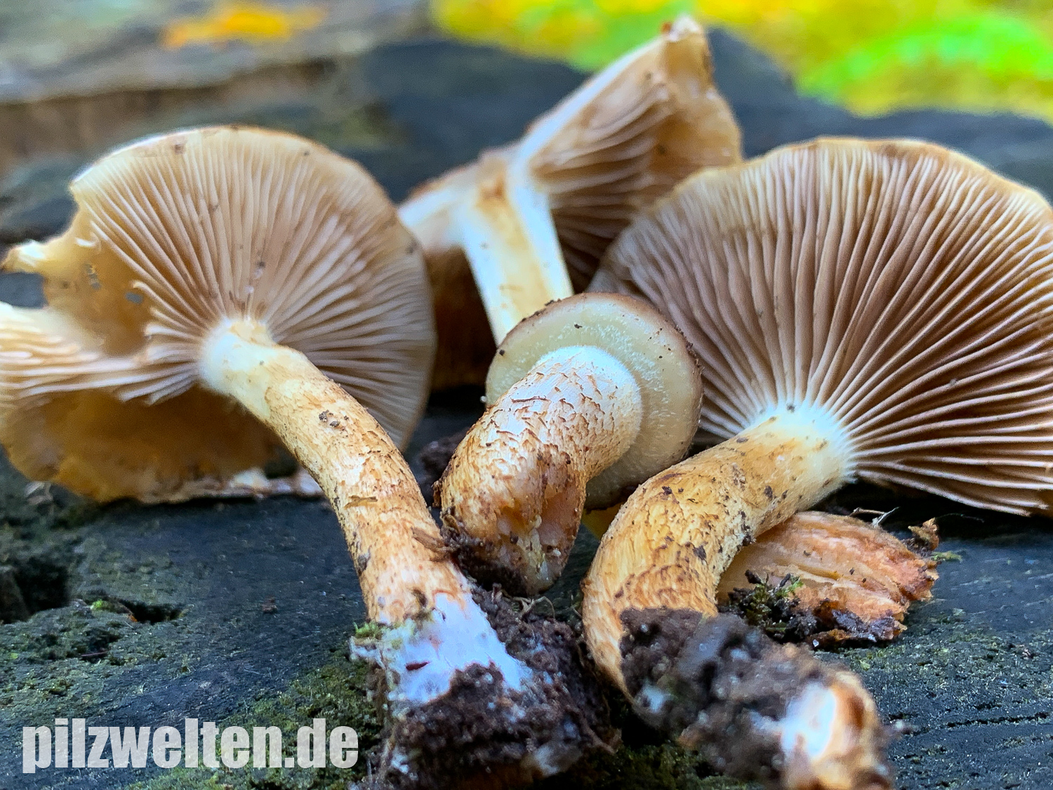 - Lamellen deutlich am Stiel angewachsen