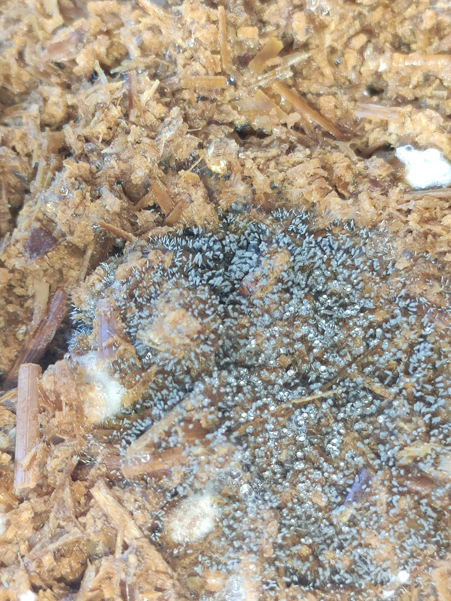 Da sie sich lokal auf dem Stroh wohlzufühlen scheinen, glaube ich nicht, dass die dem Austernmyzel gefährlich werden können.