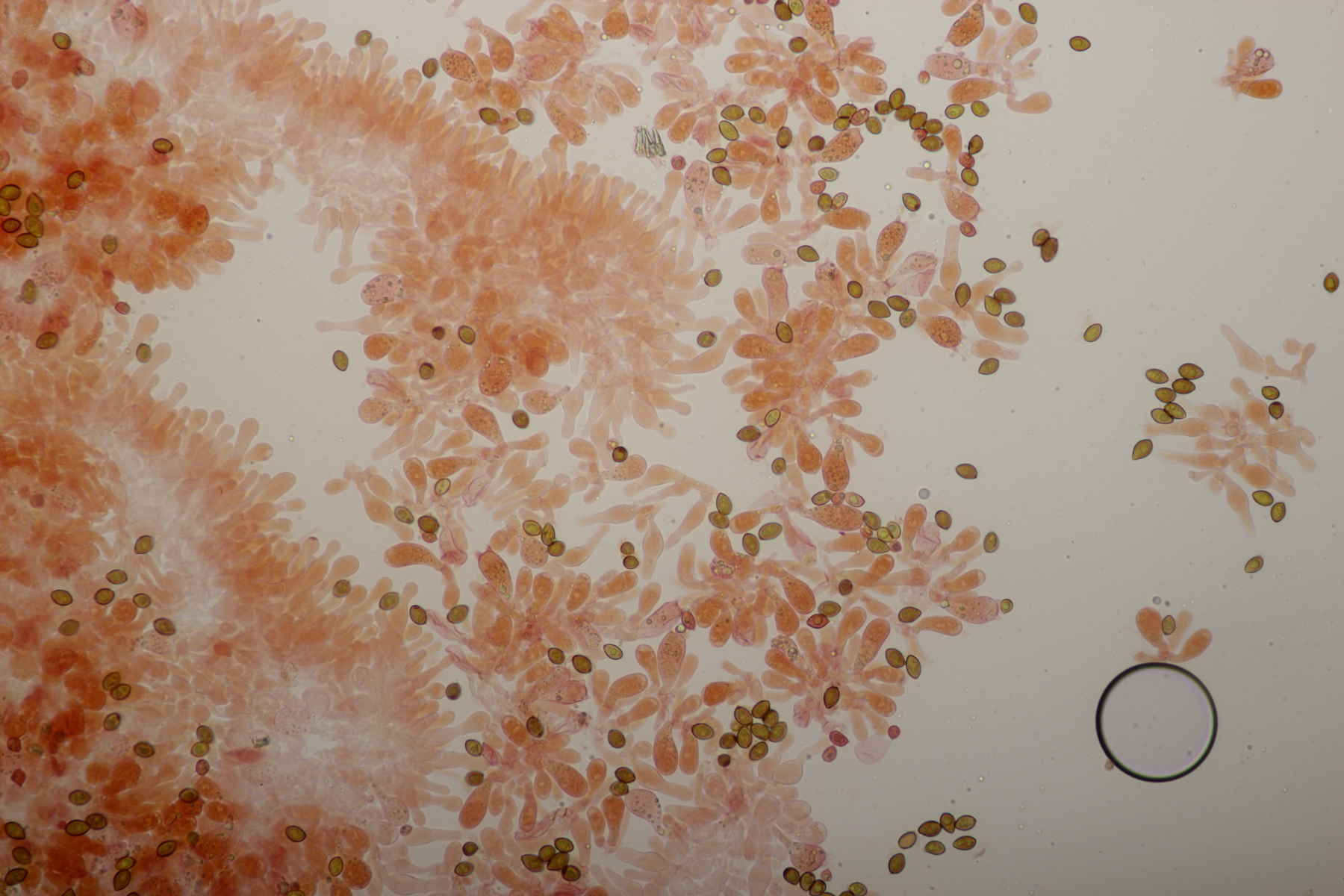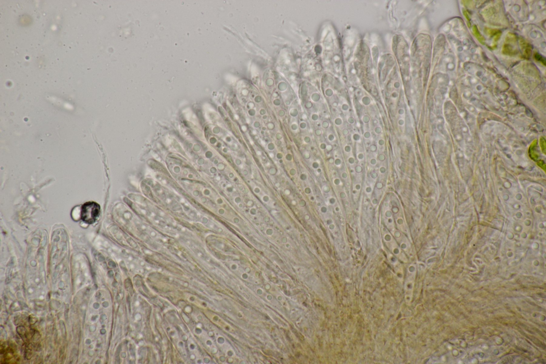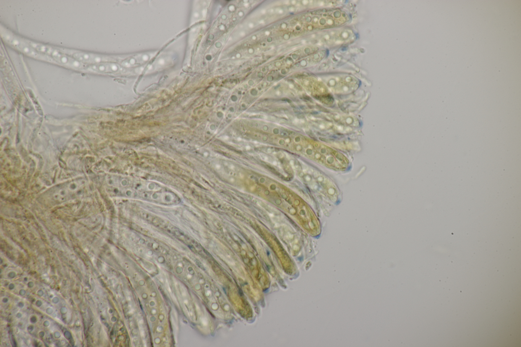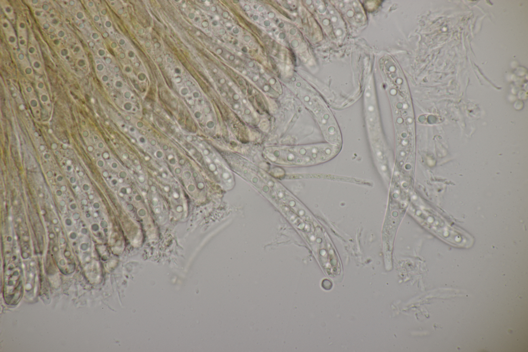 1. Alleine hätte ich hier keinen Namen vergeben können, aber mit Hans' Unterstützung ist es dann Phaeohelotium imberbe geworden. Sporengröße (9.1±1.0) µm x (3.5±0.2) µm, Q=2.6±0.3