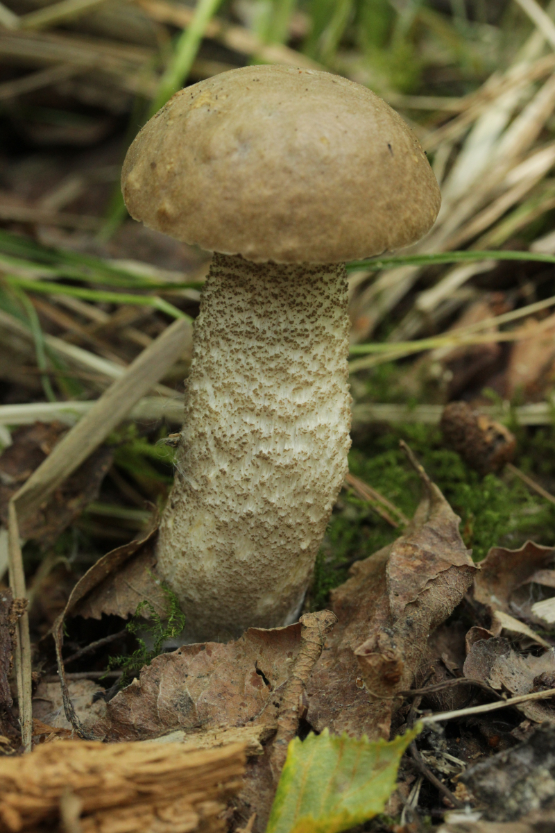 3. Ein paar Meter weiter stand dann unter Birke ein Leccinum. Laut Jochen wachsen die da öfter und bleiben charakteristisch klein. Auch diesen Fund habe ich mitgenommen. Der Stiel färbt in der Basis stellenweise blau, im Stiel gräulich, im Hut bleibt es weiß. Hut und Stiel werden mit Eisensulfat erst gelb-grün, dann grün grau. Sporen (16+-1.6) µm x (4.6+-0.4) µm, Q=3.5+-0.4. Mit diesem Input ist Karl dann letztenendes bei Leccinum palustre M.Korhonen gelandet, der bei den Bakker und Noordeloos mit L. schistophilum synonymisiert wird.
