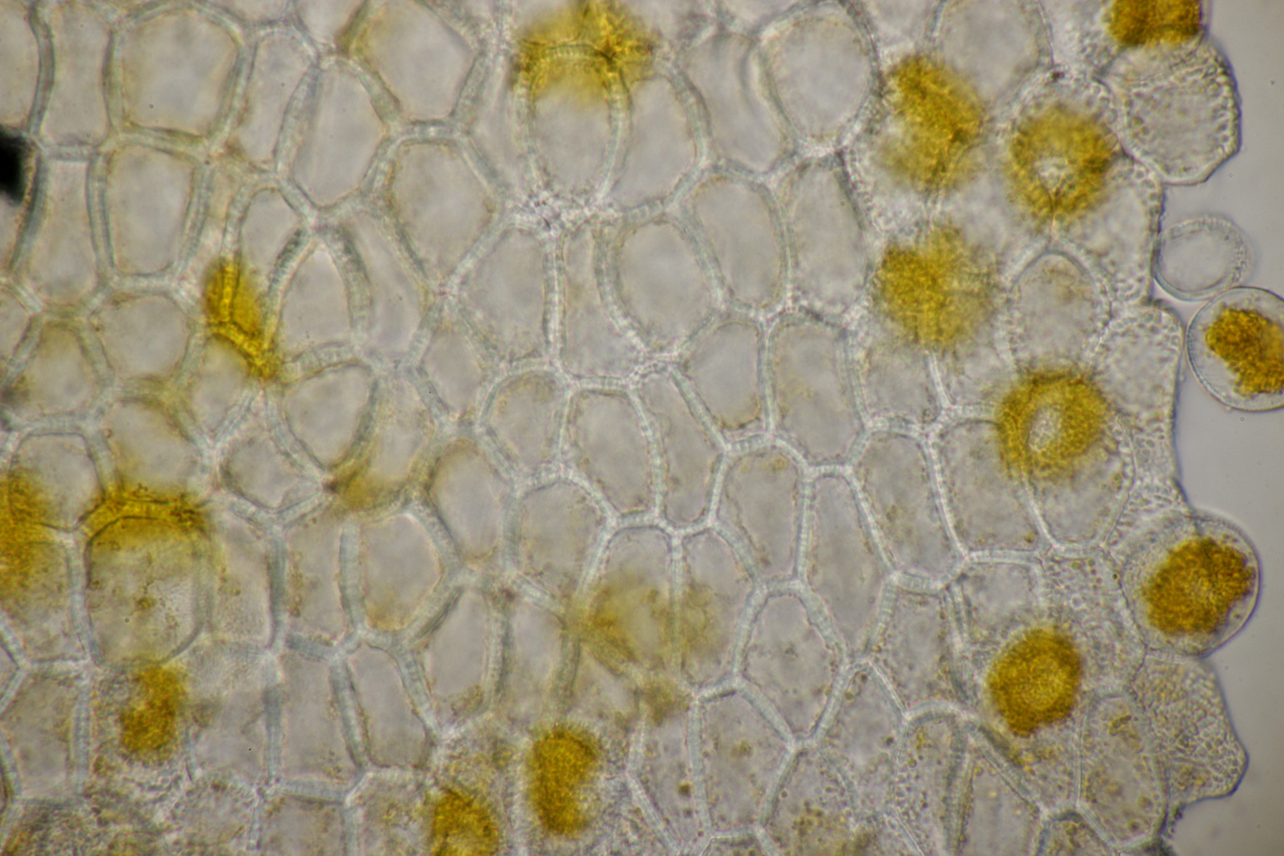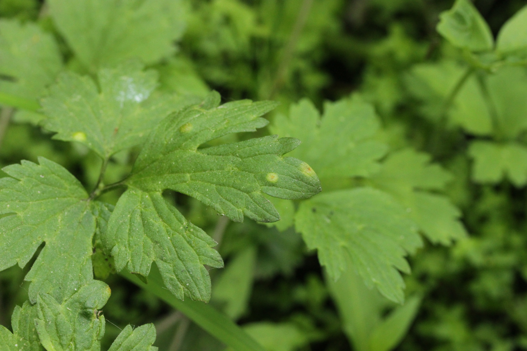 1. Als ich die Blattflecken auf Ranunculus repens sah, war mein erster Gedanke eine Entyloma. Erst als wir nach einiger Zeit ein Blatt umgedreht hatten, stellte sich raus, daß es ein Rost ist: Aecidium ranunculi-acris. Dies veranlaßte Hans dann zu dem Bonmot, daß Phytoparasiten wie Frauen sein. Man müsse schon aus der Entfernung erkennen, wie sie von der anderen Seite aussehen