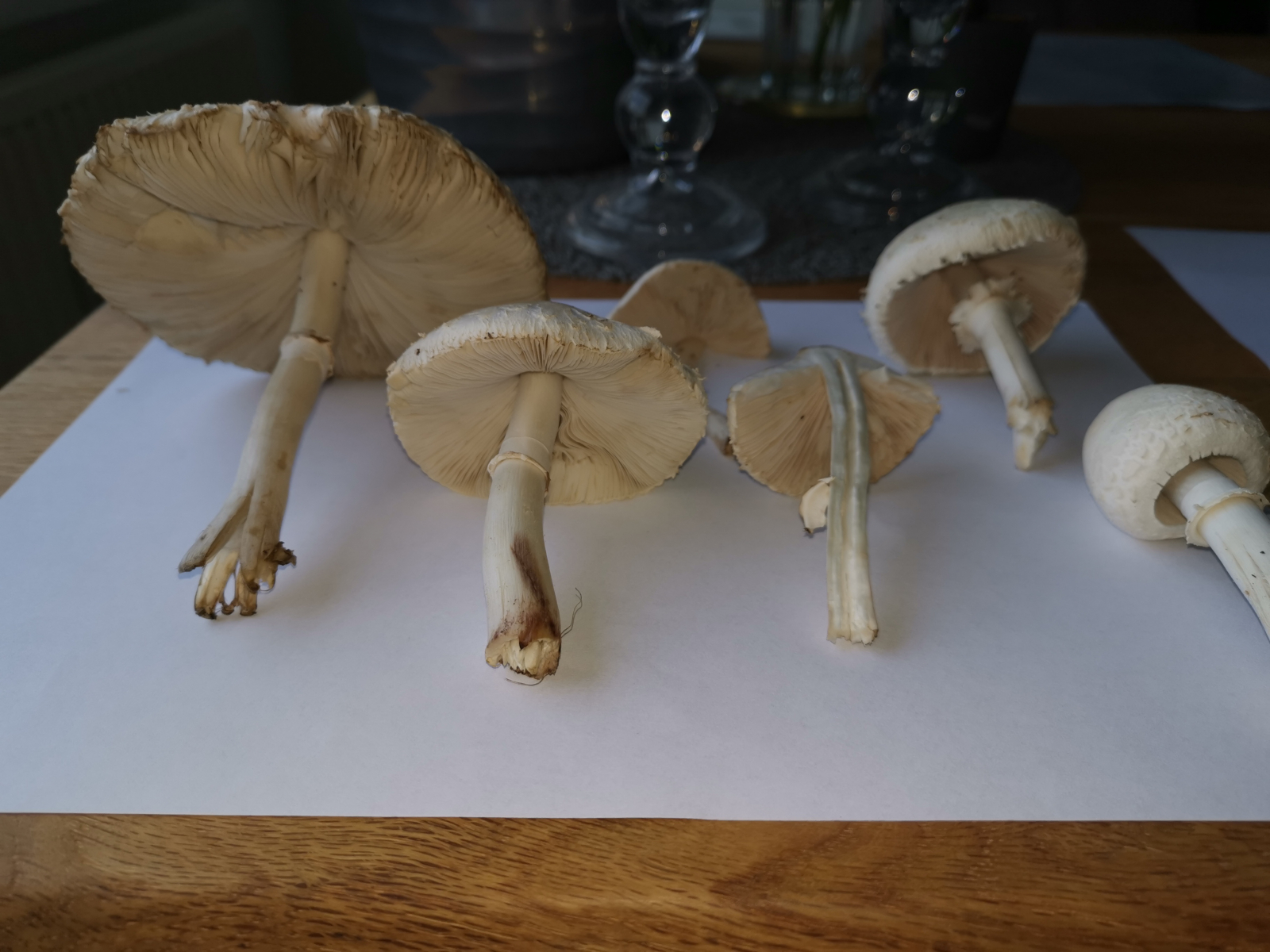• Ich war irgendwie bei der Verwechslung zum Ackerriesenschirmling. Da beide weißes Sporenpulver haben (später nicht) kann man dann das Sporenpulver mit lugolscher Lösung Prüfen (dachte ich zumindest). Denn Macrolepiota haben dextrinoides Sporenpulver. Zugegeben finde ich jetzt nicht mehr, dass es bei Leucoagaricus anders sein soll aber das war nach der Knolle, welche ja nicht zu sehen ist mein Einziger handfester Anhaltspunkt😐. Das war wohl nichts 😂😂. Leucoagaricus ist mir dieses Jahr tatsächlich zum ersten Mal im Buch richtig aufgefallen, vorher habe ich immer gedacht, dass ich vlt. eine mutierte Art des Champion ohne Sporenpulver, welches die Lamellen färbt, vor mir hätte🤦🏼‍♂️. Da bin ich noch den Ansatz gefahren nichts mit zunehmen, was weiße Lamellen hat🤷🏼‍♂️ (natürlich erfolgte eine Bestimmung aller anderen Pilze).