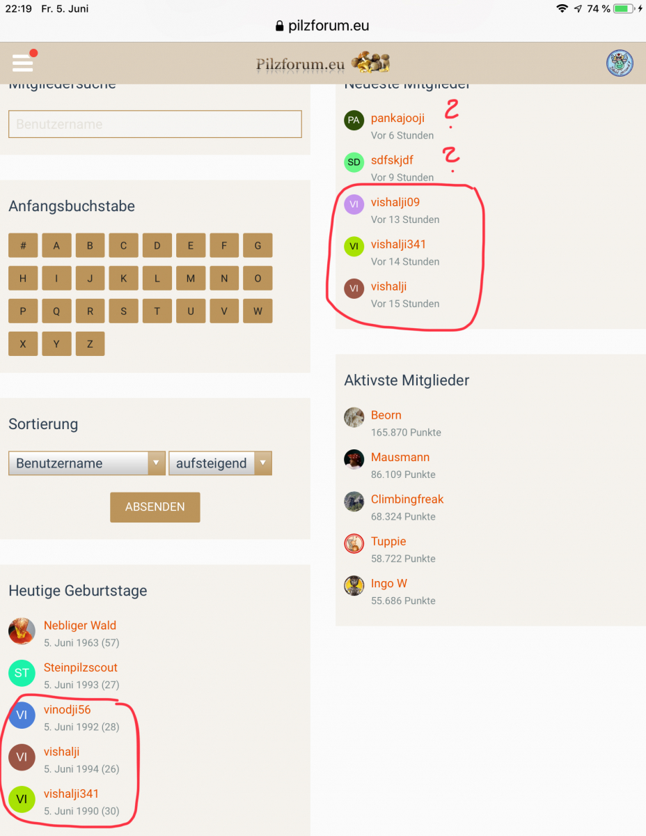 Heute sind jedenfalls schon wieder mehrere Spamaccounts zu sehen.