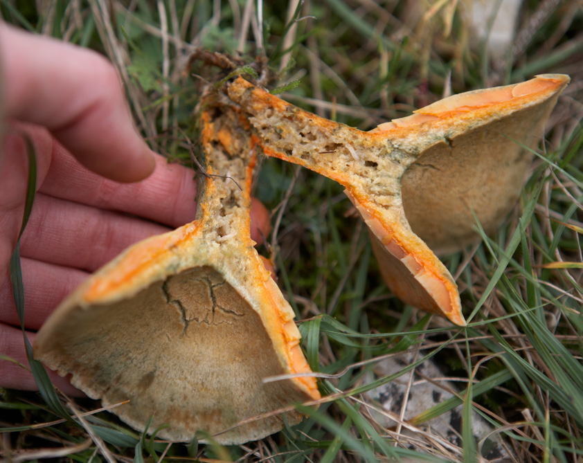 nun der zweite Pilz bei dem ich mir fast sicher bin, ich dachte ich poste ein paar Bilder, falls es jemand interessiert. Leider sah keines der exemplare lecker und/oder jung aus, aber dennoch leicht an der orangenen Farbe zu erkennen.