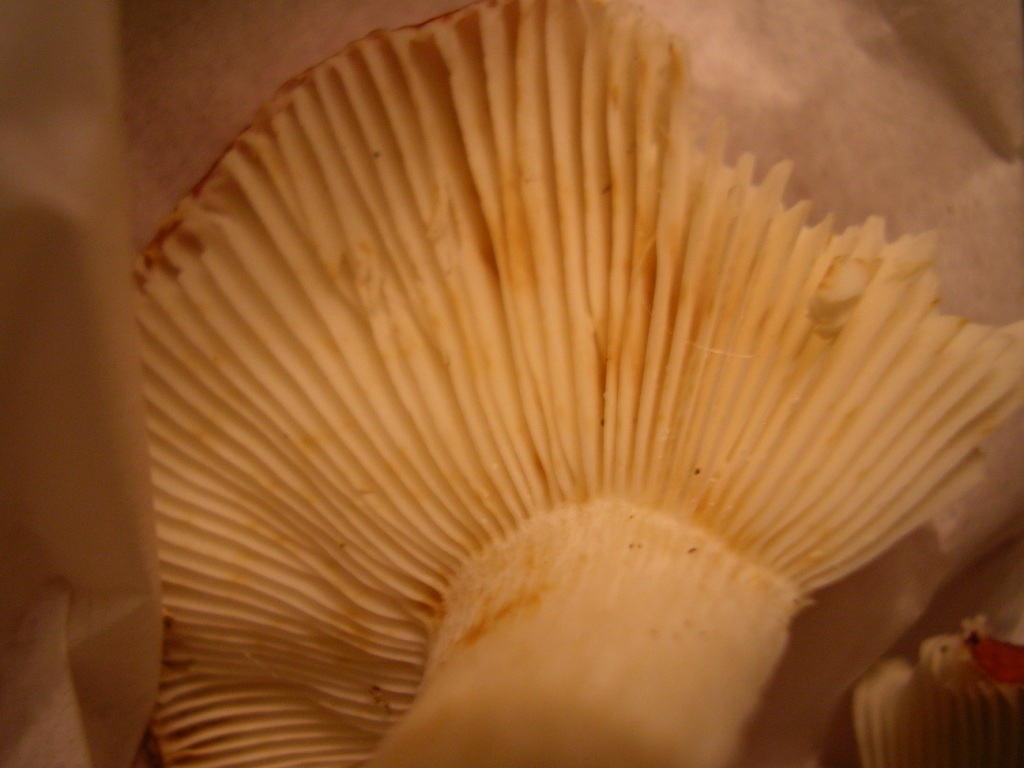 Lamellen: weiß mit gelben Flecken, Lamellen brechen nicht