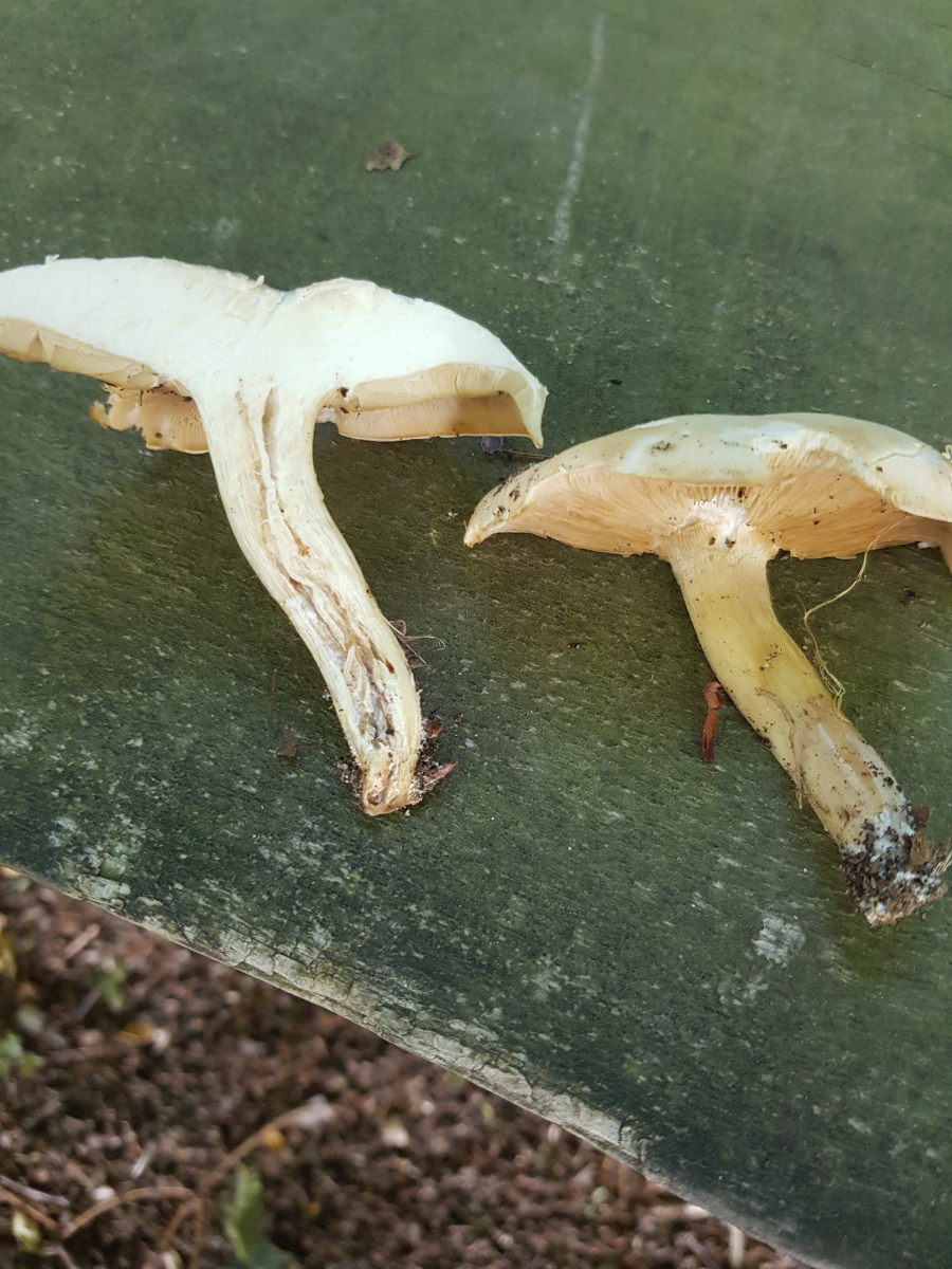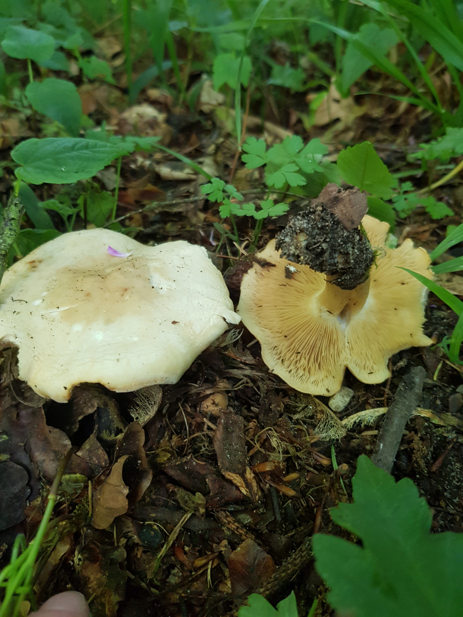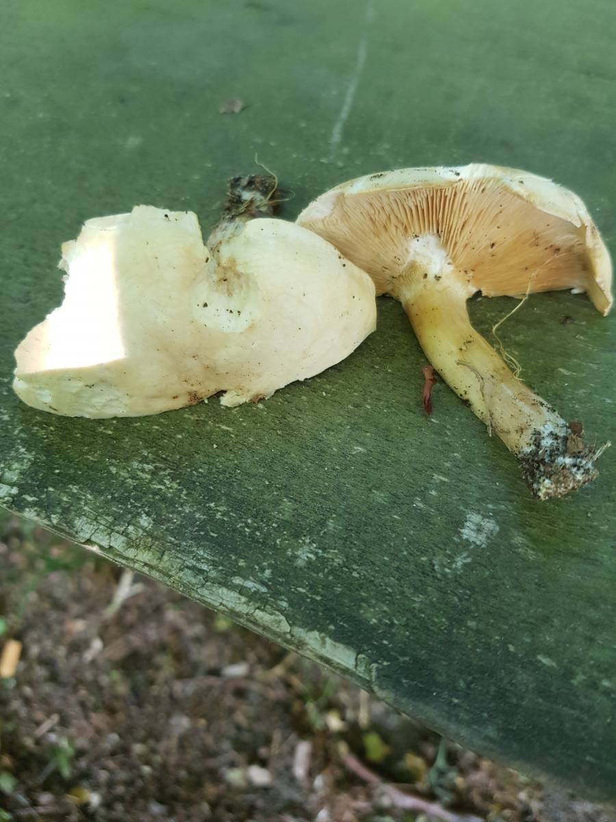 Hallo Leute, bei einem kleinen Kontrollgang in einem nahen Mischwald bin ich auf folgende Kandidaten gestoßen. Sie wuchsen zwischen einer Vielzahl verschiedener Bäume am Wegesrand. Haselnuss, Buchen, Ahorn, Kiefer, ... Zuerst dachte ich von oben an einen Maipilz aber von unten zeigten sich deutlich gelbe Lamellen. Der Geruch ist recht intensiv - schwer zu beschreiben. Mit dem aufdringlichen Geruch des Mailpilzes kann ich nicht vergleichen, da ich leider bisher keinen gefunden habe. Jetzt bin ich auf den Gedanken gekommen, dass es sich vielleicht um den Riesenrötling handeln könnte. Allerdings weiß ich von meinem PSV, dass diese Art bei uns in der Region so gut wie nie gefunden wurde - also eher unwahrscheinlich.