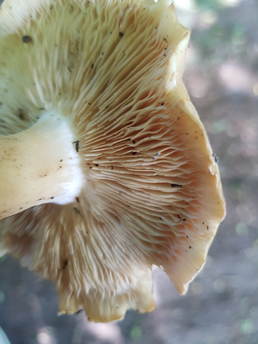 Übrigens: Die rötlichen Farben der Lamellen auf den Bildern sind verfälscht. In Natura sind keine rötlichen, sondern gelbliche Farbtöne erkennbar.